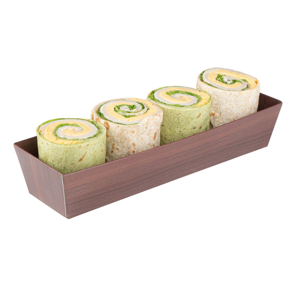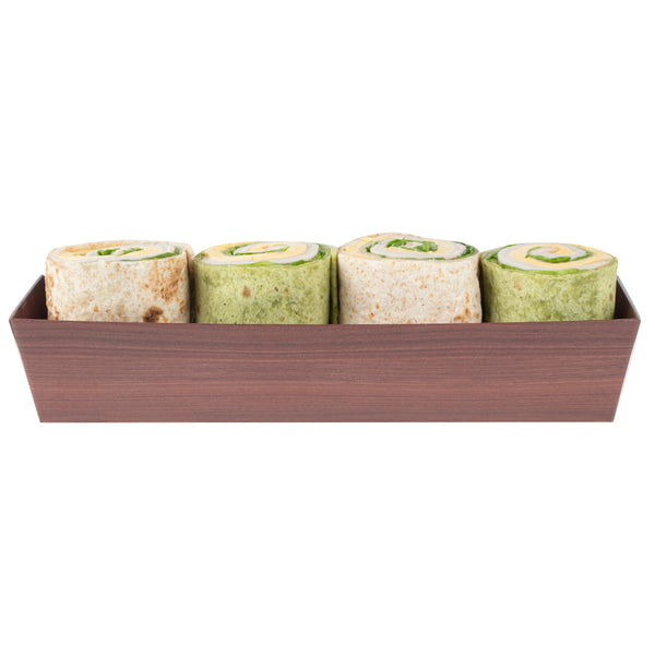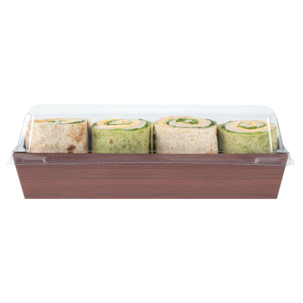 - Wood grain finish effortlessly enhances your prepackaged meal presentations