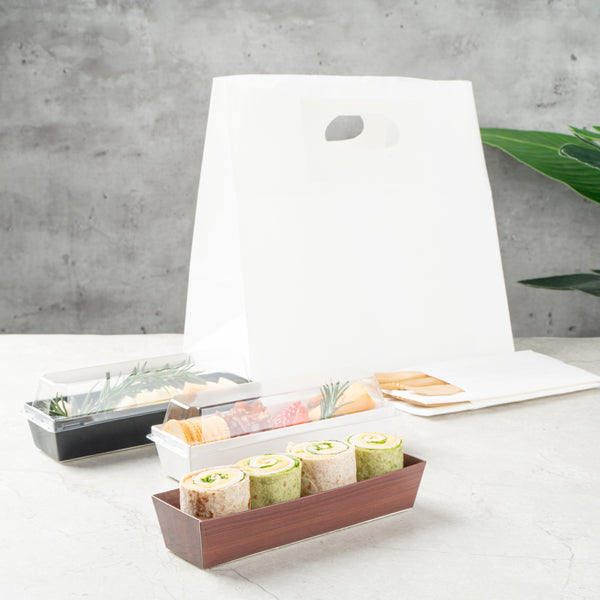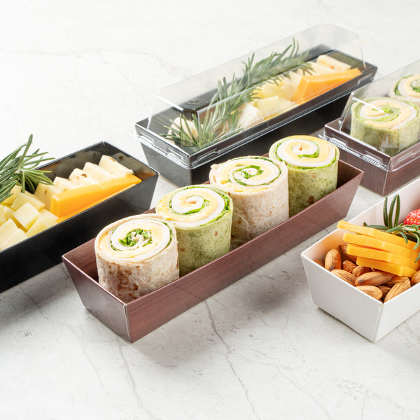 Choose from our kraft, black, white, or wood grain take out containers to complement the colors of food and match the theme of your event. Find the color that suits your needs!