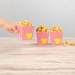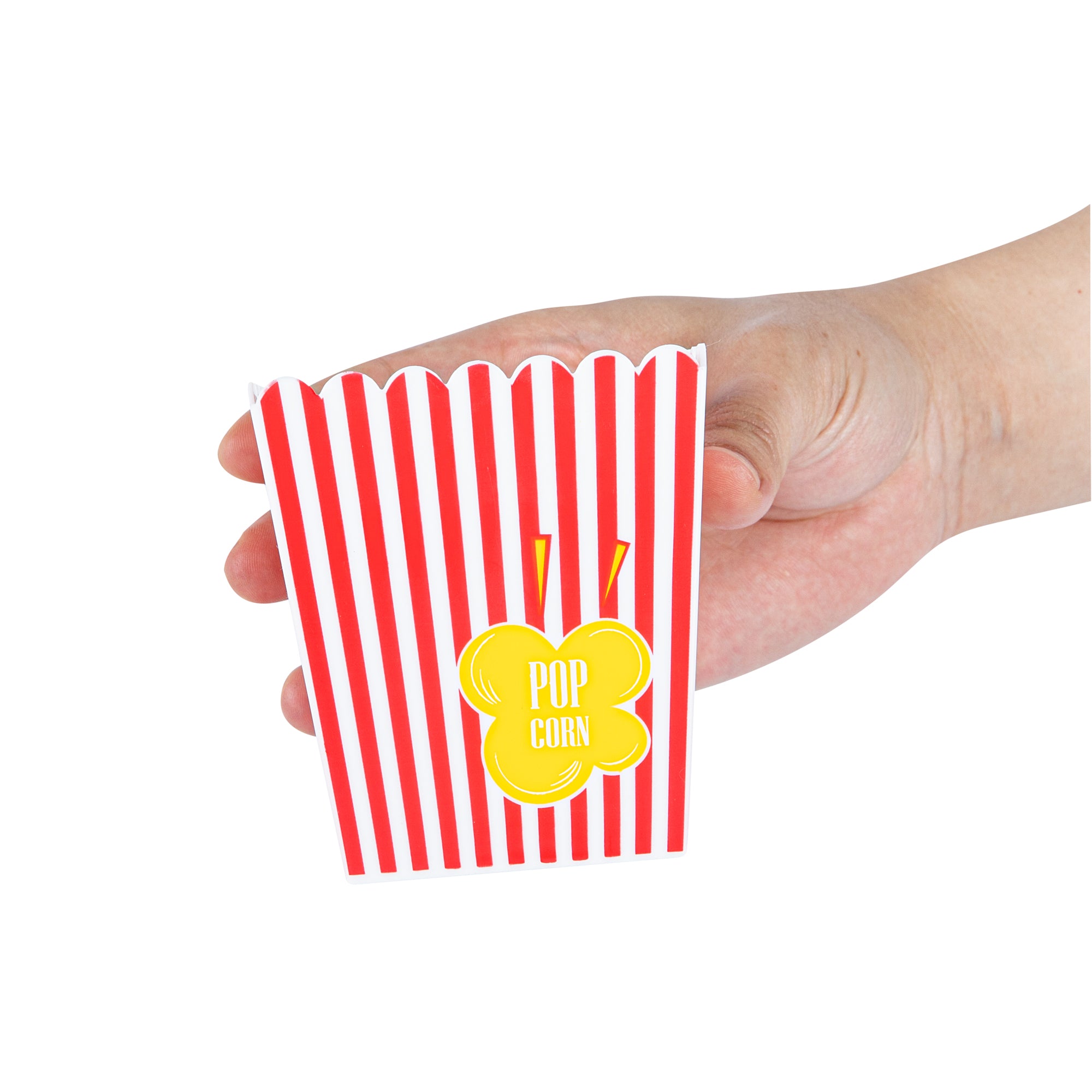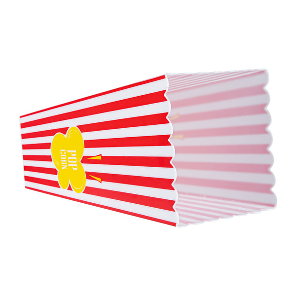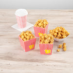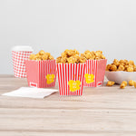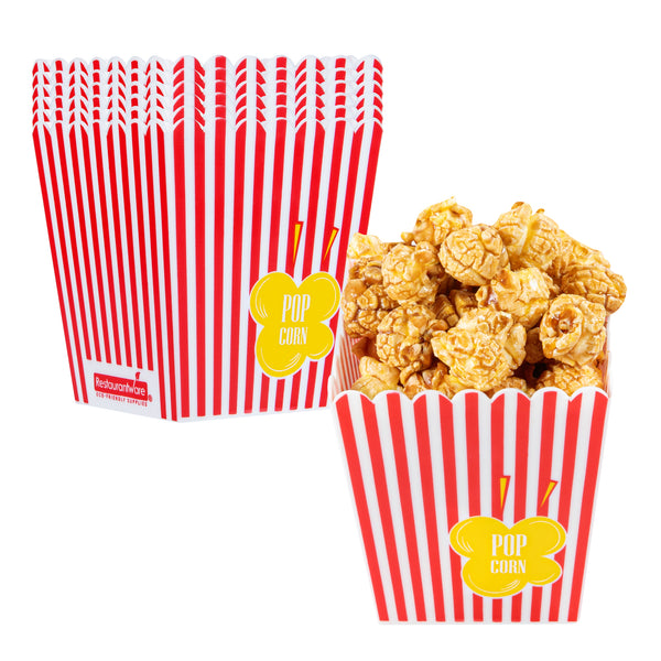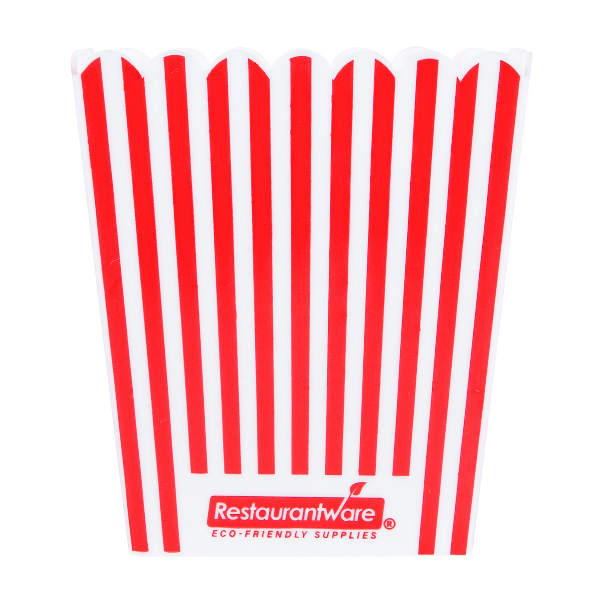 Make every movie night special with our Maxi Serve 16-ounce Red Plastic Popcorn Containers. Designed with an eye-catching striped print, these red plastic popcorn containers will surely attract popcorn lovers of all ages. Crafted from BPA-free PP plastic, these reusable popcorn tubs are suitable for holding your favorite salty or sweet popcorn. These microwavable popcorn containers allow you to enjoy warm and fresh popcorn anytime. The stackable design makes storing these open top party popcorn containers a breeze, saving valuable storage space. These plastic popcorn containers are recyclable, making them an environmentally friendly choice for your business. With a generous 16-ounce capacity, these popcorn tubs can easily accommodate a large serving of popcorn. Measuring 3.25 inches in length by 3.25 inches in width by 4 inches in height, these recyclable popcorn containers is ideal for your next movie night. Sold in a 10 count box.