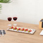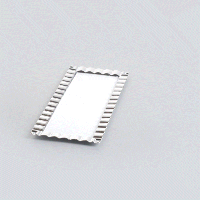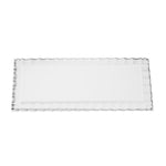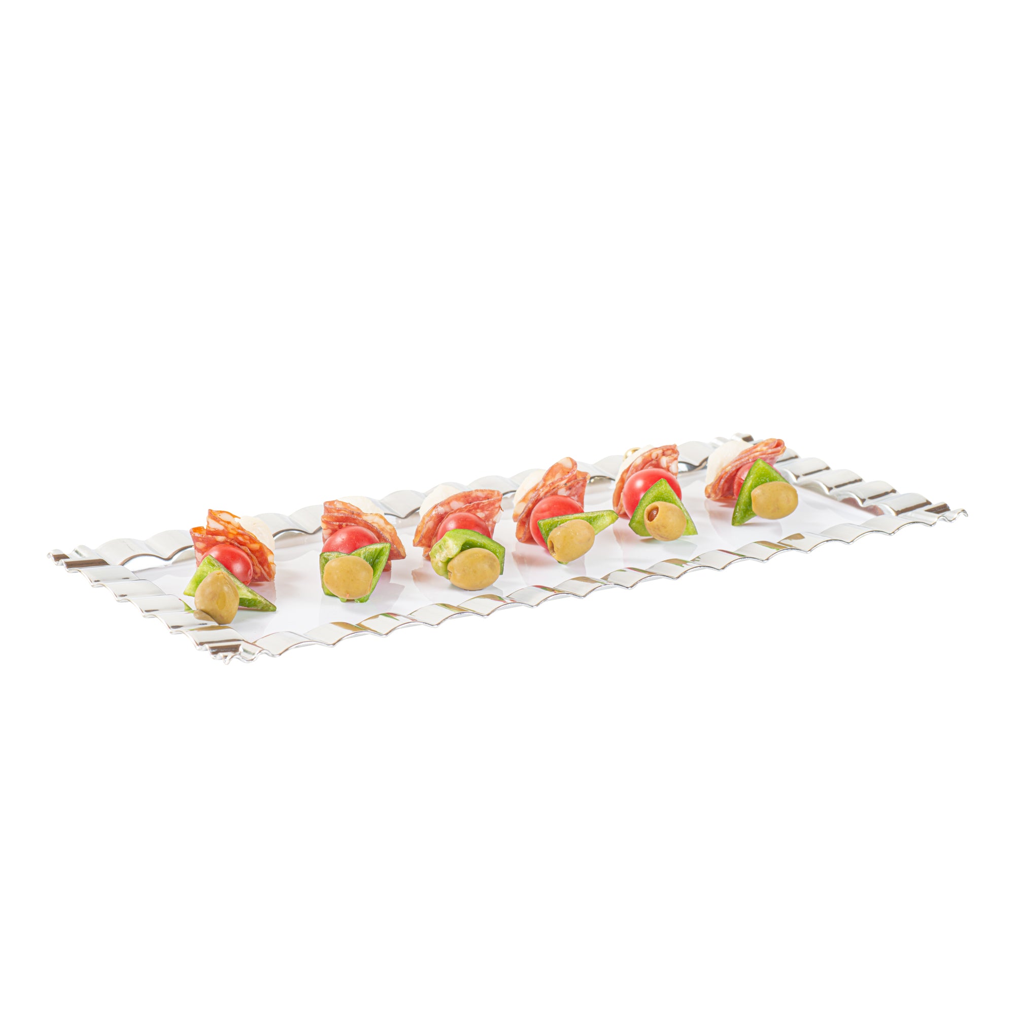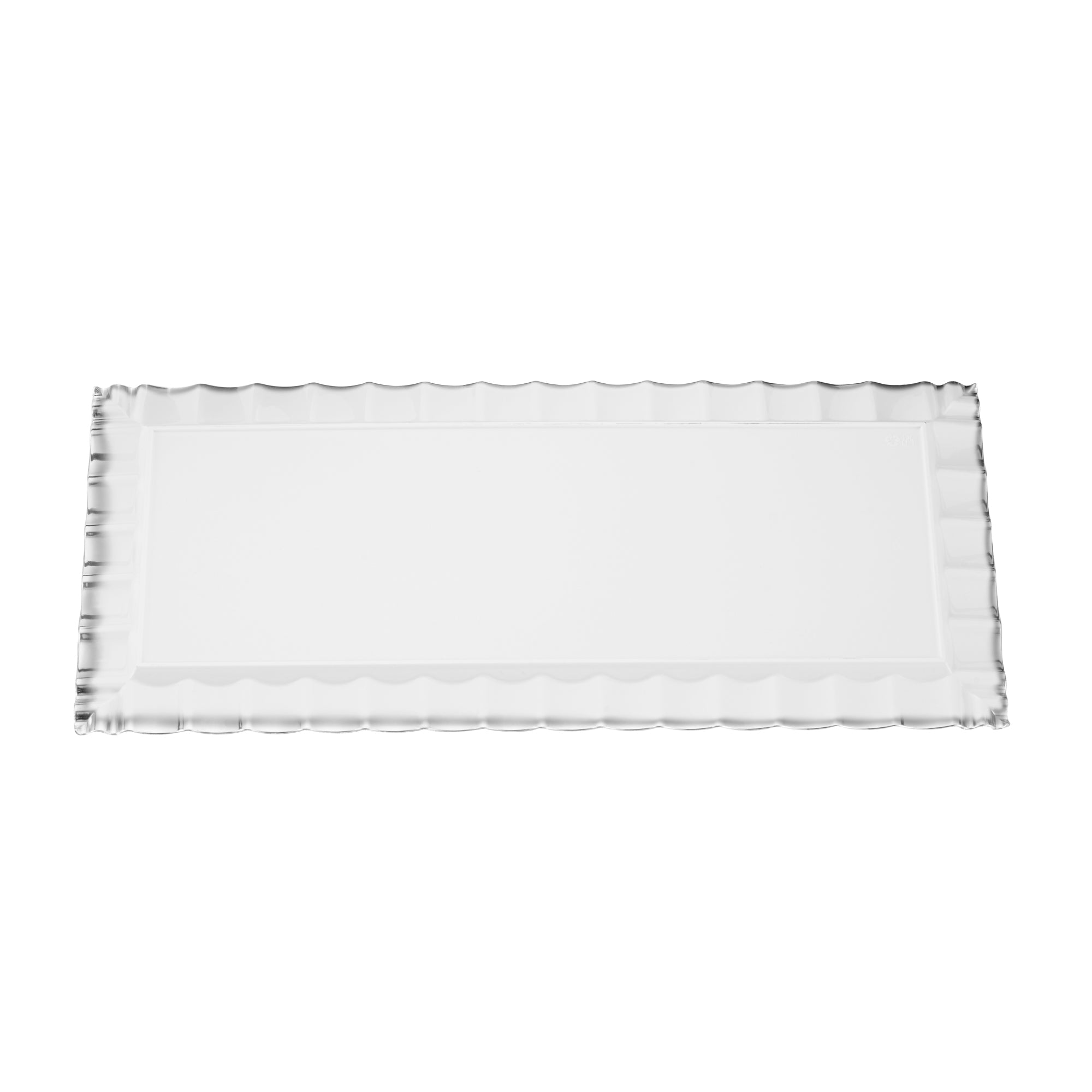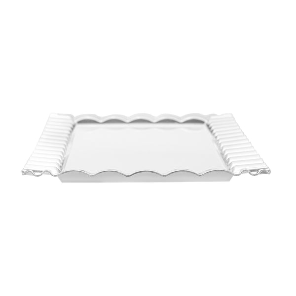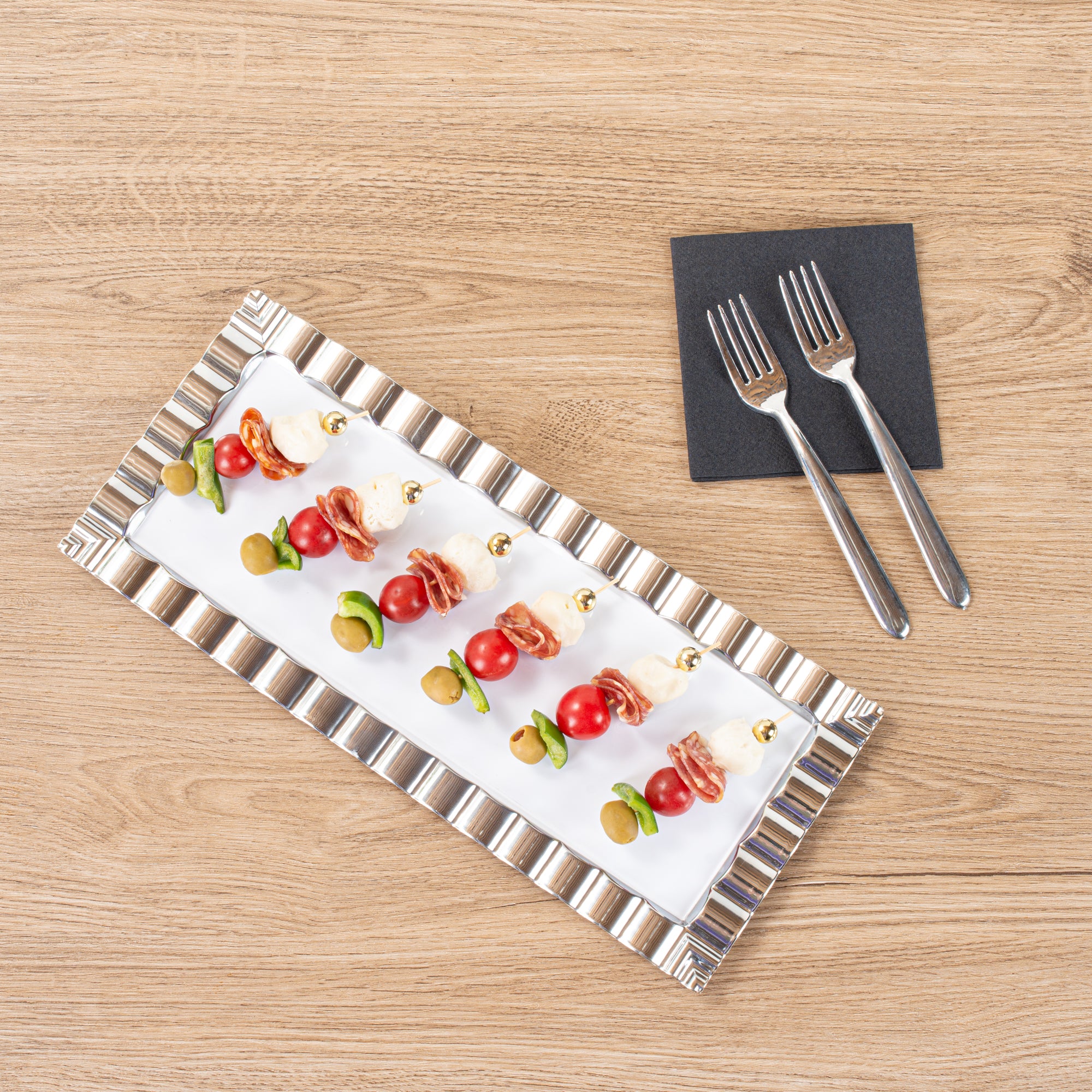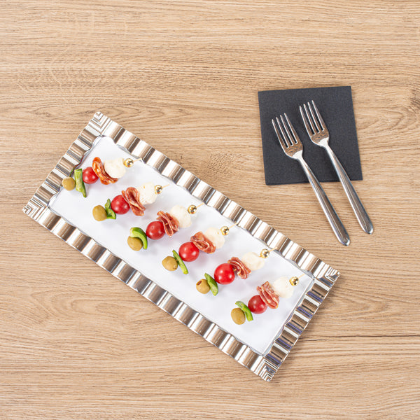 RECTANGLE WHITE PLASTIC PLATE - WITH SILVER RUFFLED RIM