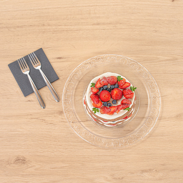 ROUND CLEAR PLASTIC PLATE - WITH LACE RIM