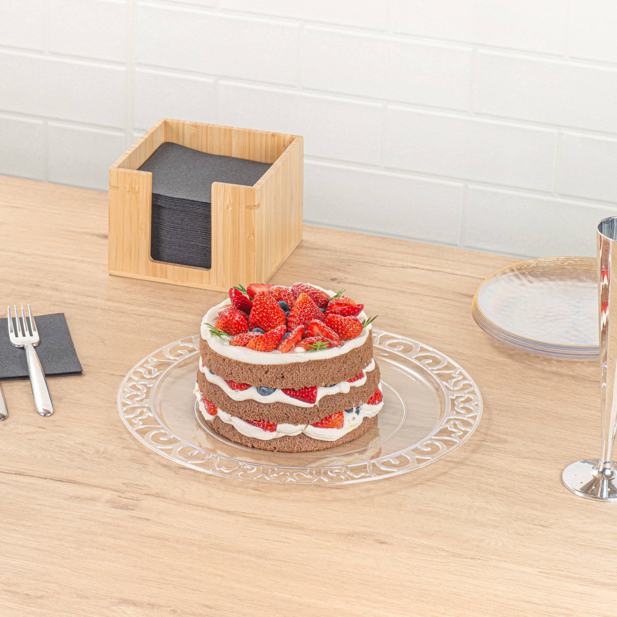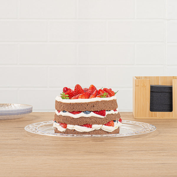 Enhance your dining experience with effortless elegance. Maxi Serve Lace Rim Plastic Disposable Plates feature a stunning lace rim edge that elevates food presentation, impressing diners at every event. Made from clear plastic, these plates offer the sophisticated appearance of glass while being shatterproof, ensuring safe and smooth service at outdoor events without the fear of breakage. Measuring 11.7 inches in length and width, they provide ample space for various culinary creations. The disposable convenience of these clear plastic plates streamlines cleanup, boosting operational efficiency in fast-paced settings, which is especially beneficial for catering services seeking reliable plastic disposable plates. Elevate your service and ensure customer satisfaction by selecting these expertly crafted plates for your next event. Each order includes 25 Maxi Serve Lace Rim Plastic Disposable Plates.