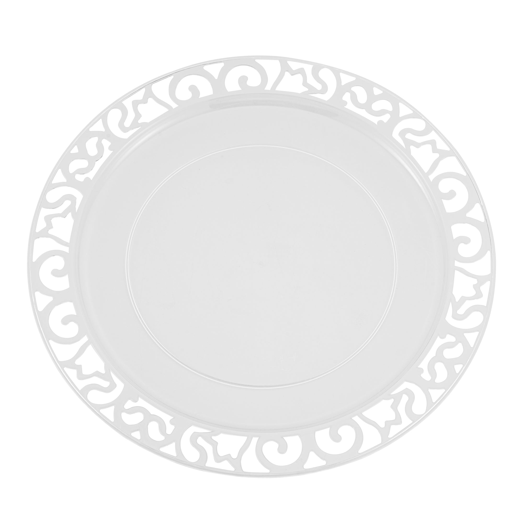 ROUND CLEAR PLASTIC PLATE - WITH LACE RIM
