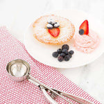 Achieve flawless scoops of ice cream every time with our Met Lux 1.7-Ounce Silver Stainless Steel #24 Ice Cream Scoop. Made from high-quality stainless steel, this ice cream scoop is designed to handle various desserts while withstanding the rigors of your bustling commercial kitchen. This cookie scoop has a capacity of 1.7 ounces to serve consistent portions, minimizing food waste. The ambidextrous squeeze handle of this cookie dough scoop enables left and right-handed employees to comfortably serve uniform portions. To make cleanup a breeze, this ice cream disher is dishwasher-safe. This stainless steel scoop measures 8.75 inches in length by 2.5 inches in width by 1.25 inches in height and can hold up to 1.7 ounces. Sold in a 1 count box.