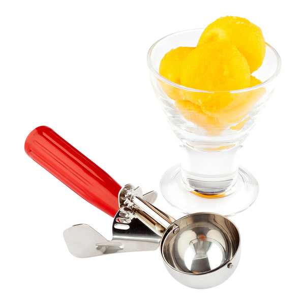 1.75 OZ STAINLESS STEEL #24 PORTION SCOOP - WITH RED HANDLE