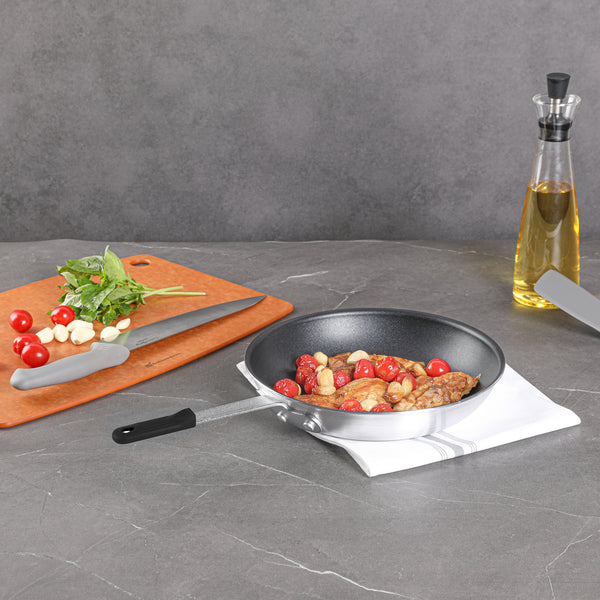 - 3 mm thick aluminum evenly distributes heat for consistent cooking results