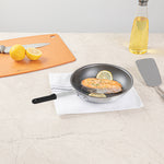 Elevate your culinary efficiency with our Bundle: Met Lux 1 Aluminum 9" Non-Stick Fry Pan with 1 Black Silicone Pan Handle Sleeve. This premium non-stick fry pan ensures that food slides right off, making both cooking and cleaning remarkably easy. Crafted from 3 mm thick aluminum, this frying pan offers superb heat distribution and unmatched durability, ideal for any high-demand kitchen. The triple-riveted handle of this aluminum fry pan provides a secure grip for safe and comfortable use. This induction-ready skillet provides versatility, allowing you to prepare a variety of dishes on different stovetops. The hanging hole in the handle of this skillet pan allows for convenient storage, maximizing valuable kitchen space. To maintain its non-stick coating, this cooking pan is hand washable only, ensuring long-lasting performance. Capable of withstanding heat up to 450F, this pan handle sleeve has durability and longevity even in high-temperature environments. The molded indentations in this removable handle sleeve offer a secure and comfortable grip, reducing the risk of accidents during busy service times. With a removable design, this black pan handle sleeve allows you to easily switch between pans without the risk of burns, enhancing safety and efficiency. This aluminum pan measures 14.57 inches in length by 8.66 inches in width by 2.95 inches in height, providing ample space for all your cooking needs. Each order includes 1 pan and 1 sleeve.