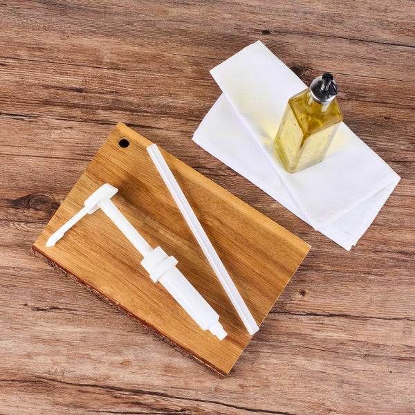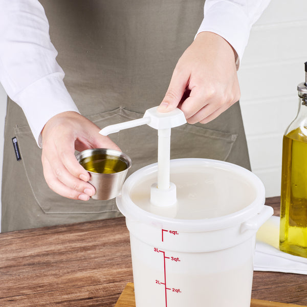 Our Met Lux 1-ounce White Plastic Condiment Pump ensures precise condiment dispensing for your foodservice needs. With an innovative 11-inch trimmable dip tube, these condiment dispensing tools accommodate various container sizes effortlessly. Crafted from durable PP plastic, this 1-ounce pump dispenser is designed for long-lasting use and reliability. Cleaning is a breeze with this plastic sauce pump, making maintenance hassle-free in busy kitchens. These versatile white condiment pumps are perfect for sauces, syrups, and dressings, adapting to a wide range of culinary applications. The pump's capacity is 1 ounce, ensuring consistent portions, while its compact dimensions of 11 inches in height make it ideal for tight spaces. Sold in a 1 count box.