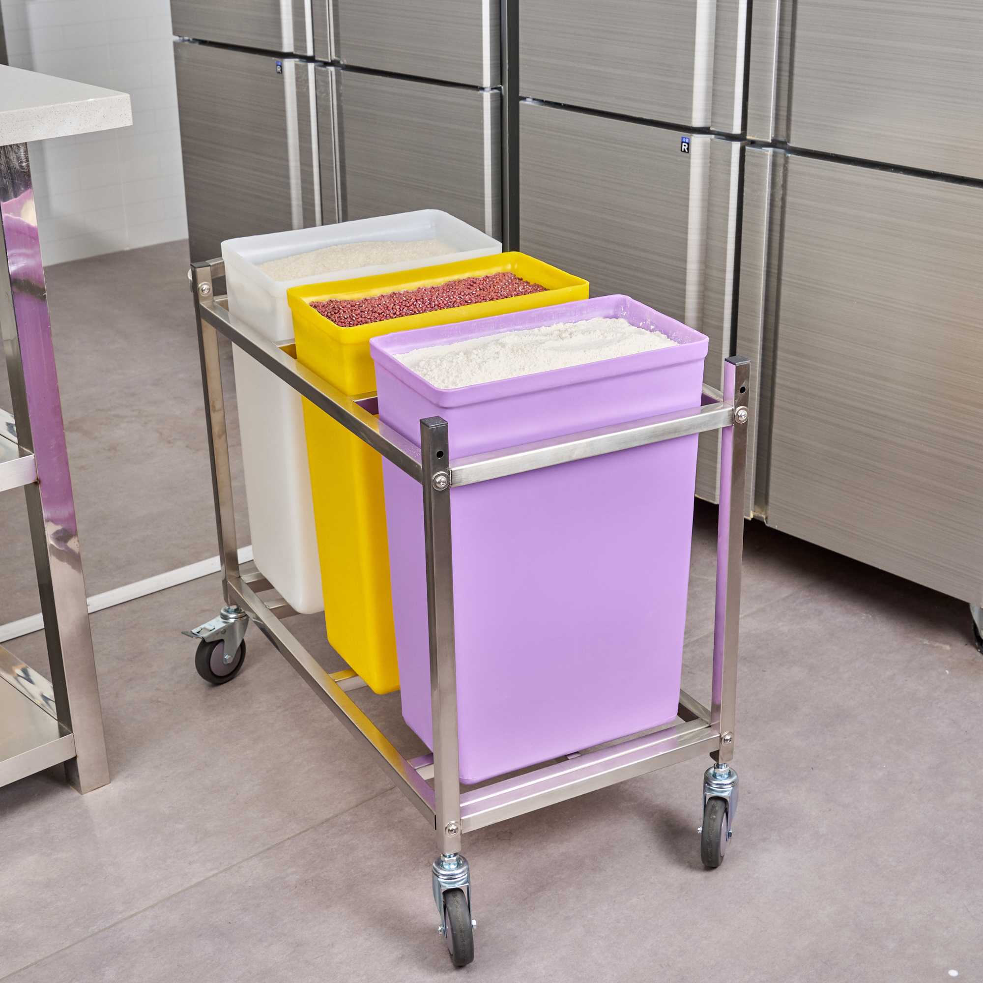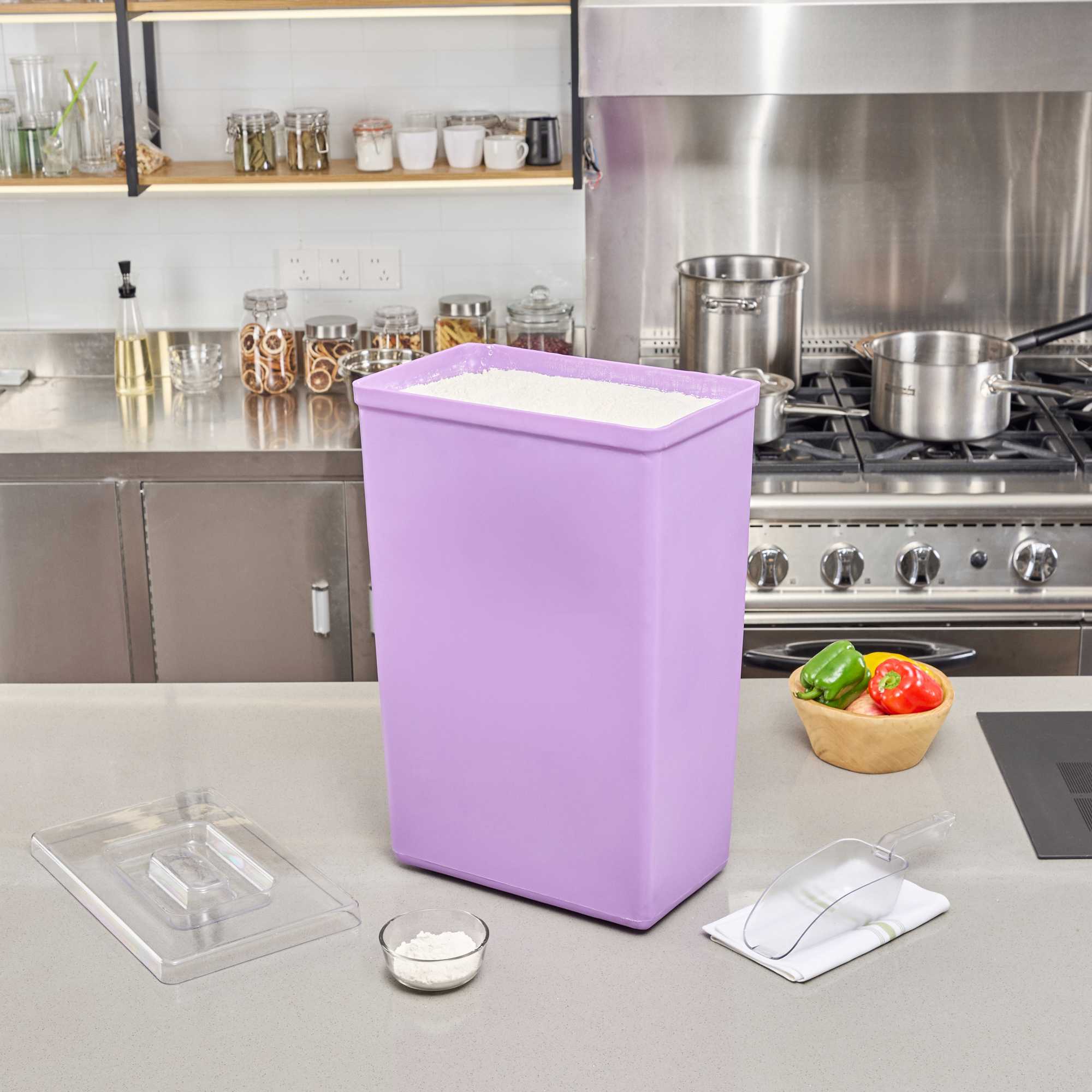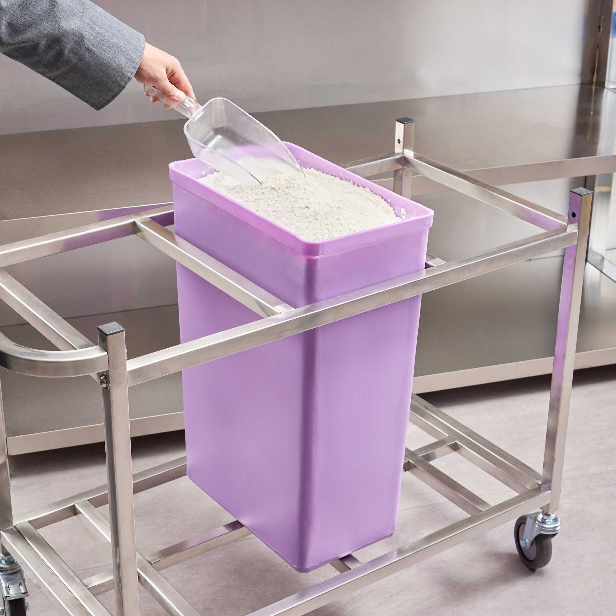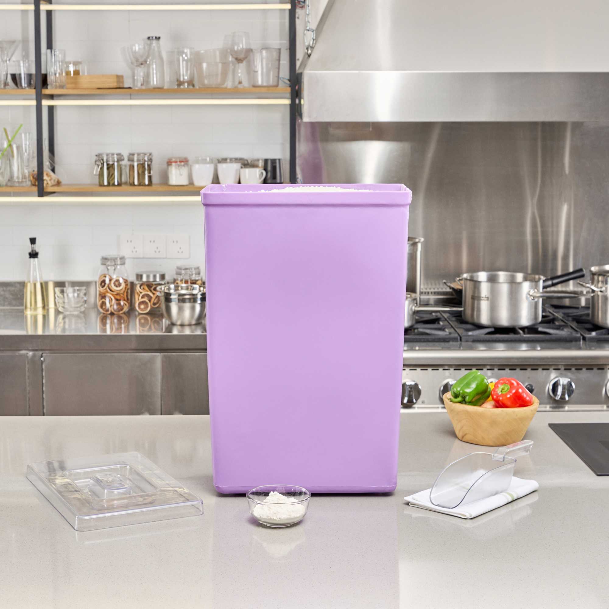 Ensure optimal ingredient safety with color-coded storage. The Met Lux Cross-Contamination Prevention Ingredient Bin offers a reliable solution for maintaining food safety standards in your kitchen. With its color-coded design, this ingredient bin with lid effectively prevents cross-contamination, ensuring safer storage for your bulk ingredients. Constructed from durable polyethylene, this food storage container withstands rust, chips, and corrosion, making it perfect for enduring the rigors of a commercial kitchen environment. The stability feet provide a secure base, preventing tipping in busy kitchens and enhancing operational efficiency. Measuring 15.1 inches in length and 9.1 inches in width, this commercial kitchen bin can hold approximately 55 pounds of flour or 75 pounds of sugar, supporting large-scale food preparation needs. Each order includes 1 Met Lux Cross-Contamination Prevention Ingredient Bin.