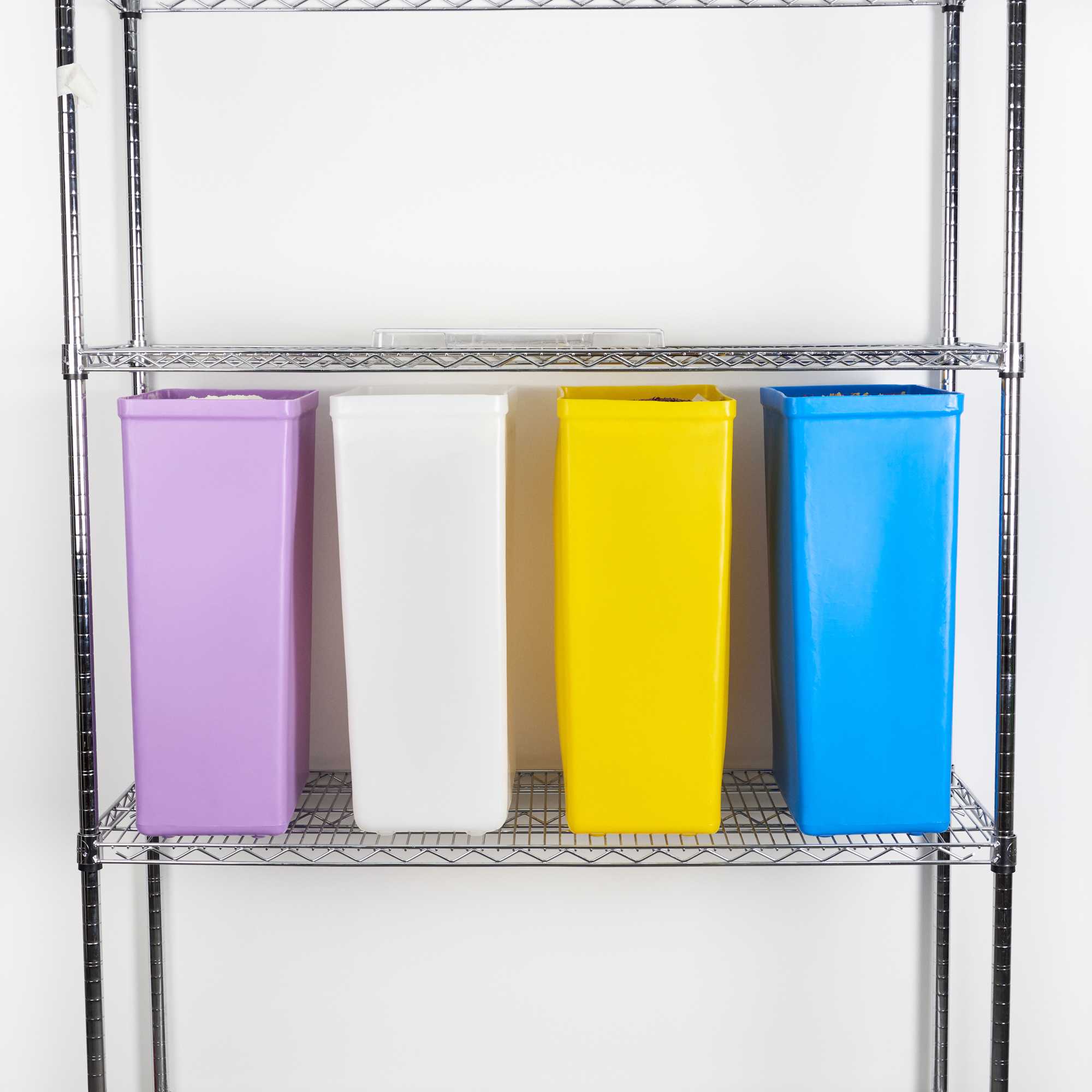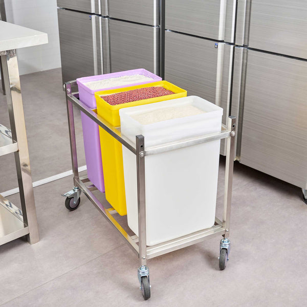 Prevent cross-contamination in your kitchen with color-coded storage. The Met Lux Color-Coded Food Storage Bin offers a reliable solution for maintaining ingredient safety and organization in busy commercial kitchens. Constructed from durable polyethylene, this plastic ingredient container resists rust, chips, and corrosion, ensuring it remains a staple in your pantry for years to come. The feet on the base provide additional stability, making it ideal for areas with heavy foot traffic. With dimensions of 15.1 inches in length, 9.1 inches in width, and 23 inches in height, it can easily hold approximately 55 pounds of flour or 75 pounds of sugar, making it the perfect bakery storage bin for bulk ingredients. Enhance your kitchen's efficiency and safety by integrating this essential storage solution. Each order includes 1 Met Lux Color-Coded Food Storage Bin.