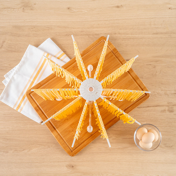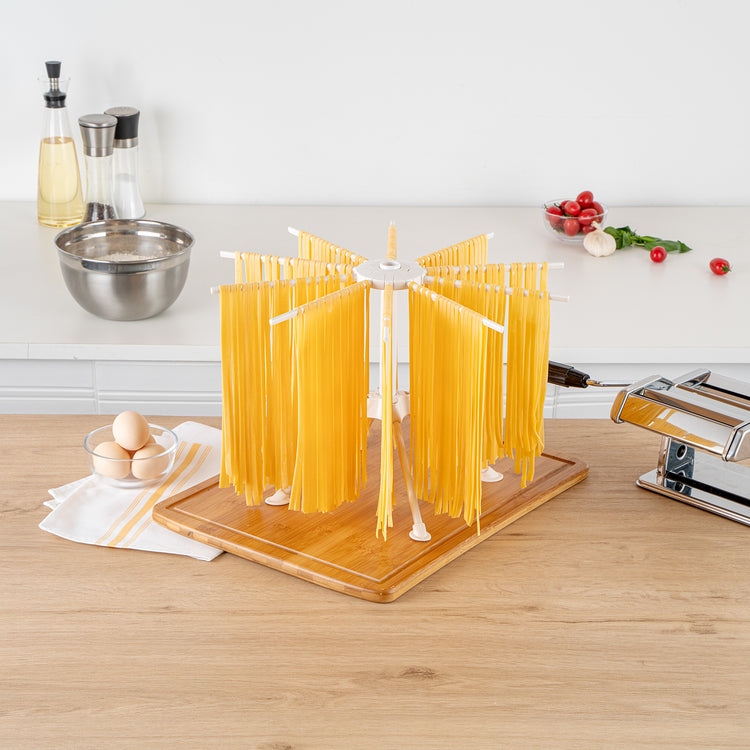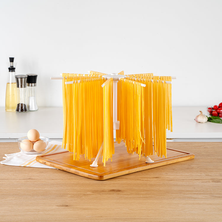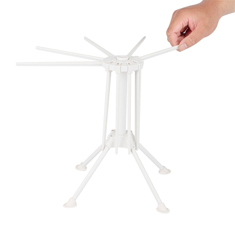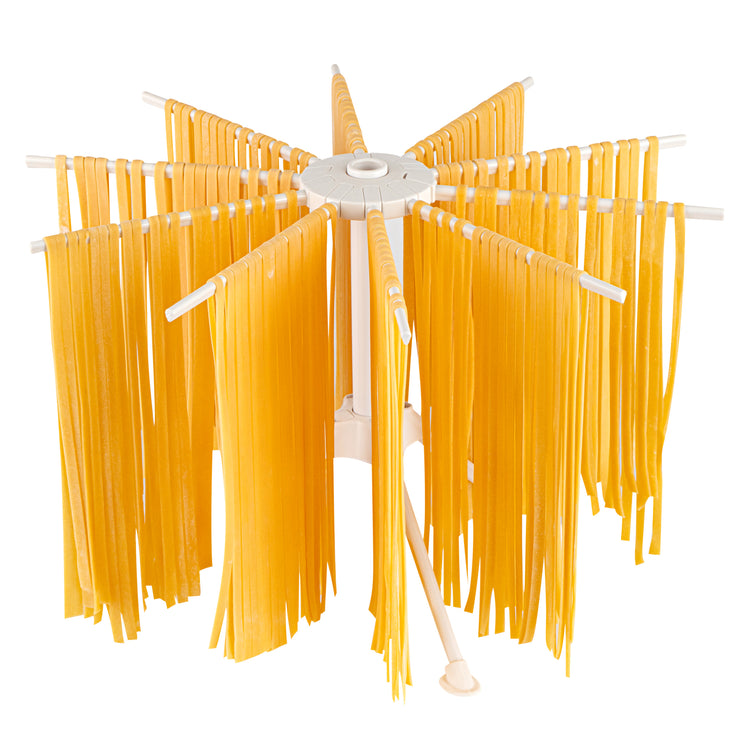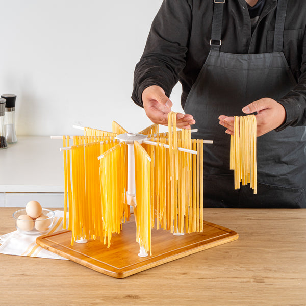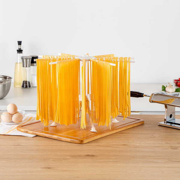 Designed for ease of use, this pasta drying rack comes with collapsible arms to ensure a swift setup and can be tucked away for compact storage. This straightforward operation saves time and effort while saving space during storage.
