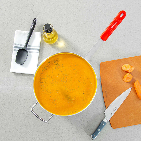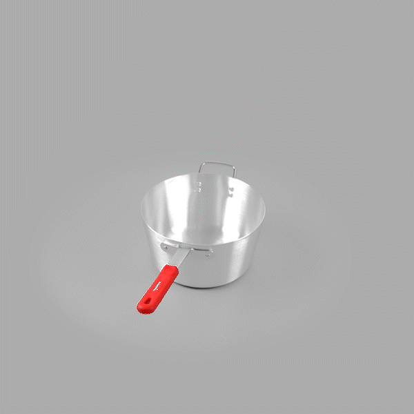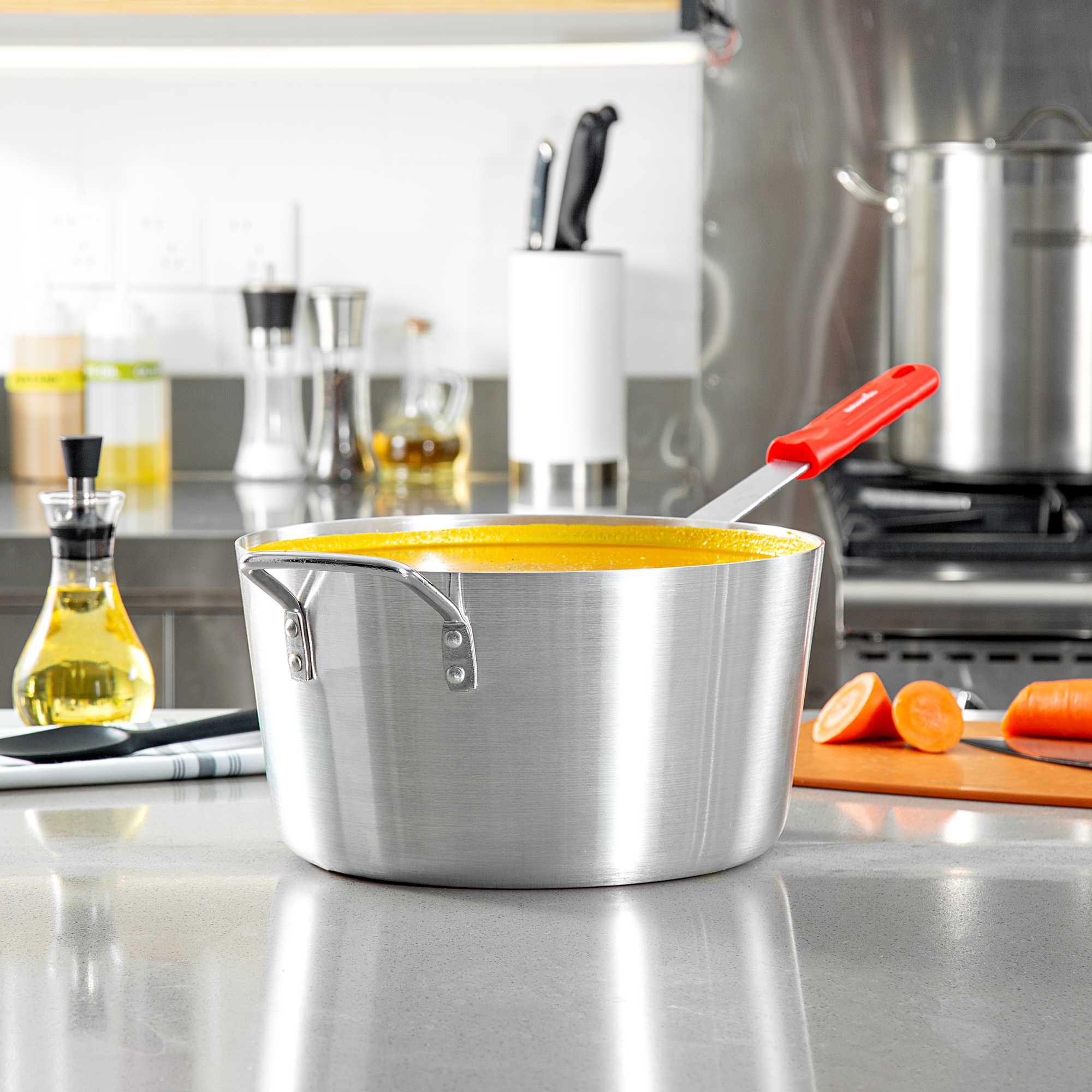 10 QT TAPERED ALUMINUM SAUCE PAN - WITH RED SILICONE HANDLE SLEEVE