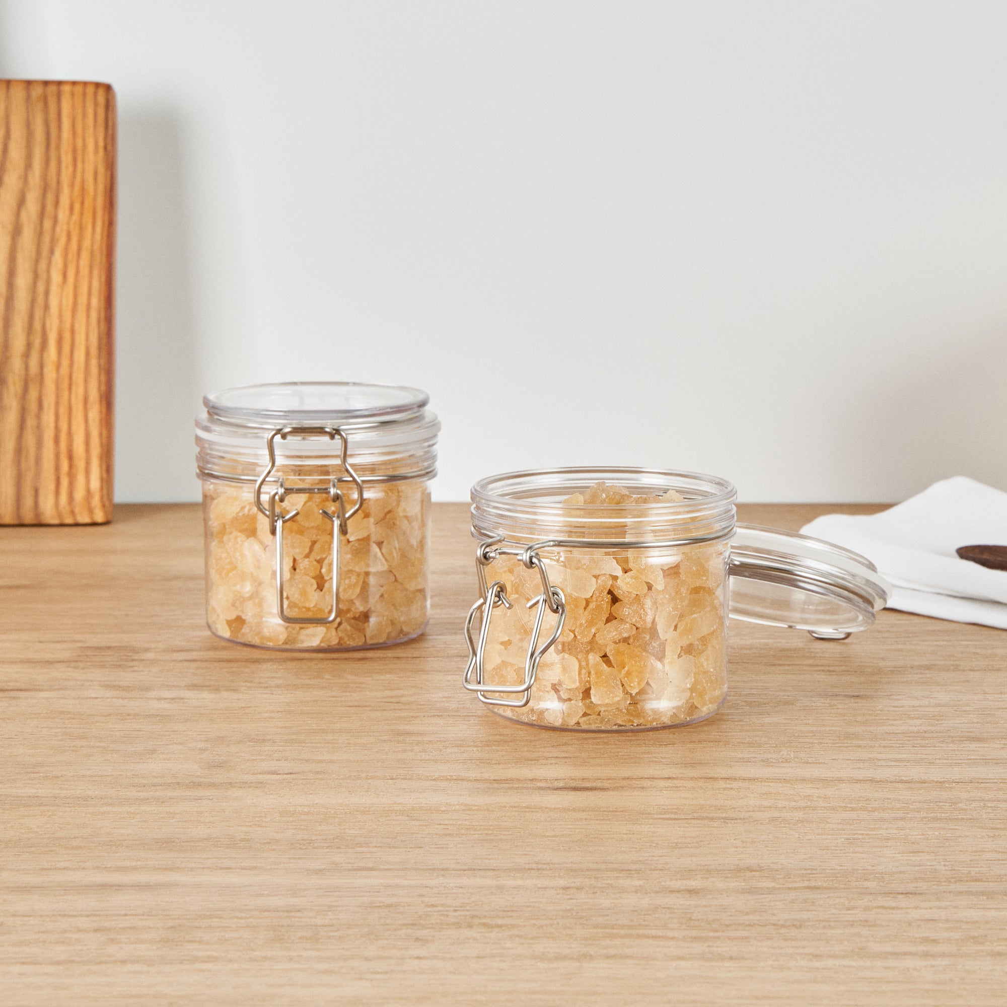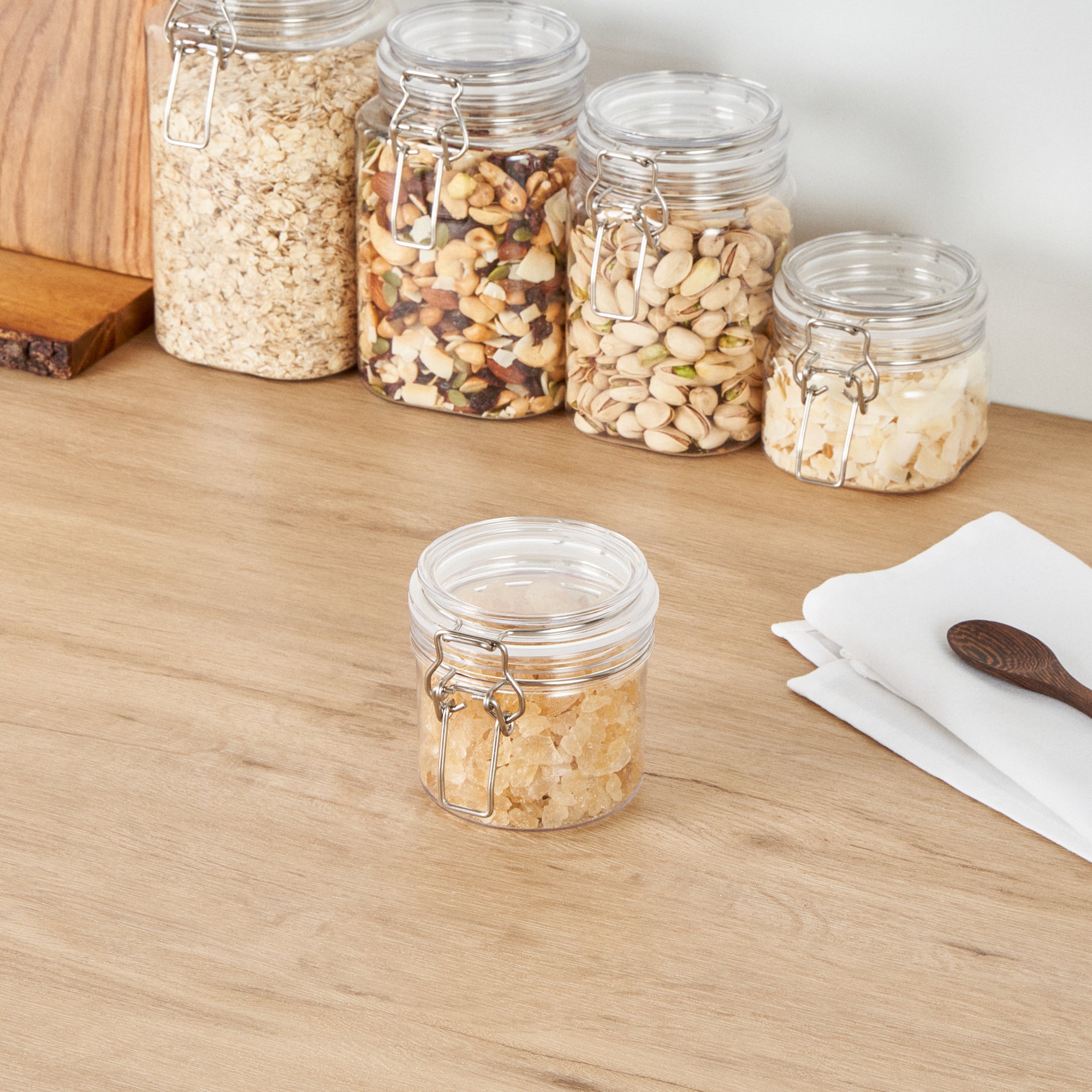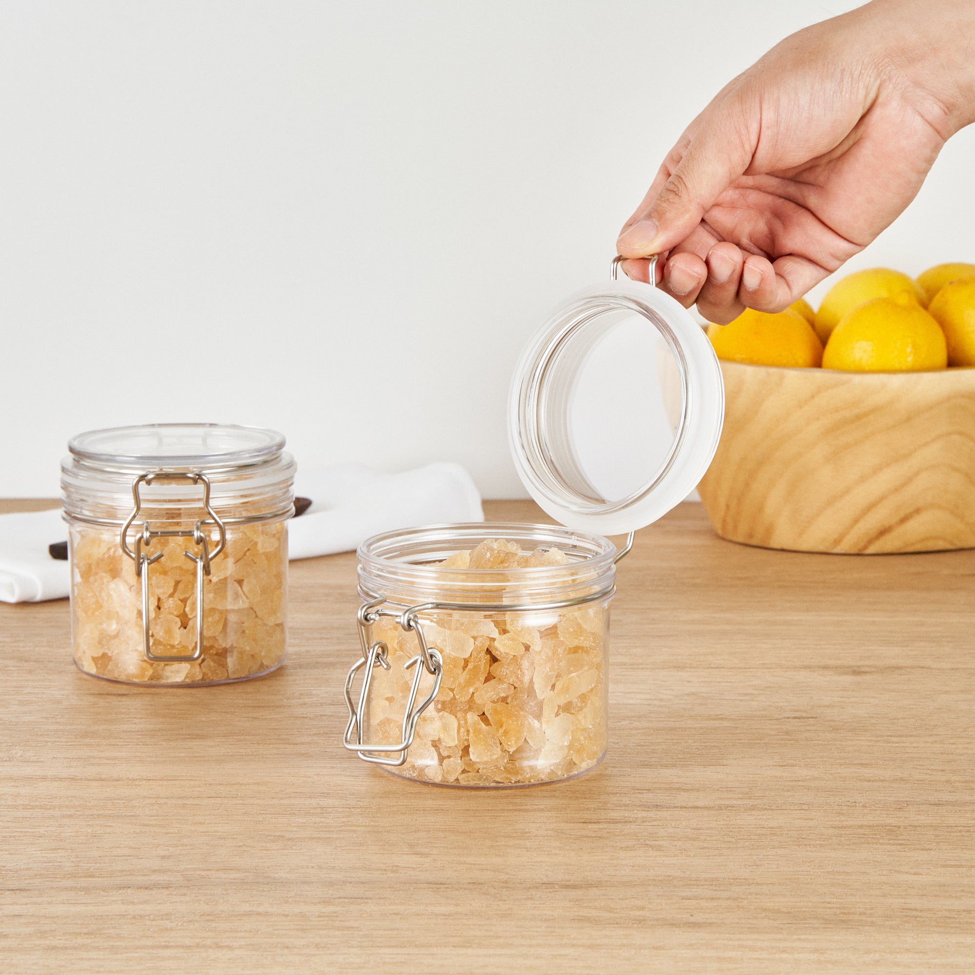 Ensure maximum freshness with airtight plastic jars. Met Lux Clear Wide Mouth Jars are constructed from plastic, offering safety and durability for long-term use, and their clear design allows for quick inventory checks. The airtight design, featuring a leak-proof rubber gasket and hinged lid, preserves the aroma and flavor of your stored ingredients, making them ideal plastic food storage containers. With a convenient wide mouth design, these jars simplify the process of filling and accessing ingredients, ensuring efficiency for busy kitchen environments. Measuring 3.44 inches in length by 3.44 inches in width and 3.54 inches in height, these jars are perfect for storing an array of items from flour and sugar to coffee beans and spices, with a capacity of 11.9 ounces. Enhance your kitchen’s organization effortlessly with these versatile clear wide mouth jars. Each order includes 20 Met Lux Clear Wide Mouth Jars.