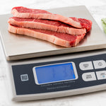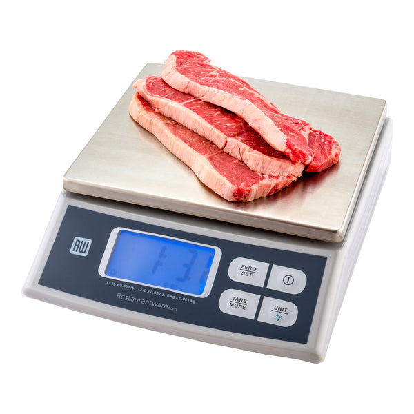 Weigh a variety of ingredients with ease on our Met Lux 13 LB Digital Portion Control Scale. Featuring an LCD display, this professional use food scale is built with a backlight and bold characters to easily read and weigh products in a productive manner. This stainless steel kitchen scale is designed with raised grips at its base to ensure it remains stable when weighing your premium ingredients. Equipped with multiple functions, this portion scale allows you to tare, zero out, and choose between 4 weighing units to accurately weigh ingredients. The stainless steel platform of this weighing machine measures 9 inches long by 10 inches wide, providing ample space to place various items. This durable digital food scale provides an efficient way to keep track of your food products and guarantees consistent serving sizes at your cafe, hotel, restaurant, or other foodservice establishments. Measuring 11.5 inches in length by 10.5 inches in width by 3.15 inches in height, this weighing scale offers a convenient way to measure your food. Sold in a 1 count box.