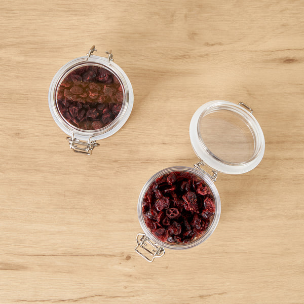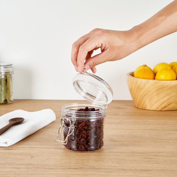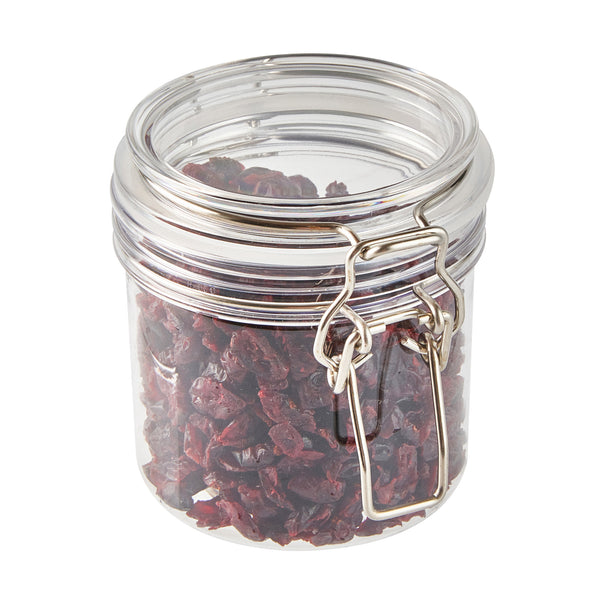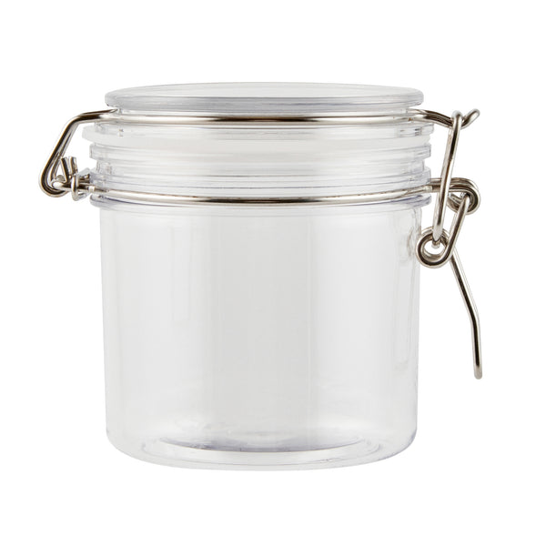 Meet your kitchen storage need with our Met Lux 15-ounce Round Clear Plastic Storage Jars. With a hinged top lid, these clear jars allow for effortless one-handed access without unscrewing. These plastic storage containers feature a rubber gasket, providing an airtight seal to keep contents fresh and protected. Crafted from premium plastic, these storage jars are durable and sturdy, ensuring reliable storage for a variety of items. The wide mouth of these kitchen canisters allows for easy filling, scooping, and cleaning, making them incredibly convenient for everyday use. Designed with versatility in mind, these plastic containers with lids are perfect for storing dry spices, herbs, and baking ingredients. With a clear finish, these plastic containers offer a visually appealing look and allow for easy identification of contents, keeping your storage area organized and clutter-free. These plastic jars boast a capacity of 15 ounces and measure 3.46 inches in diameter by 3.94 inches in height, making them ideal for various kitchen essentials. Sold in a 20 count box.