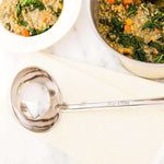 - Long handle reaches into deep pots for easy scooping and for easy serving