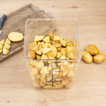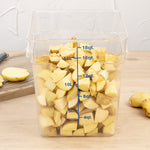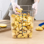 Safely store ingredients with our Met Lux 18-quart Square Clear Plastic Food Storage Container. Featuring blue quart and liter graduations, this food container allows you to quickly check inventory levels. The transparent finish of this food prep container clearly displays your fruits, vegetables, and spices to easily identify stored food. With a handle on each side, this food storage container provides a comfortable grip when handling hefty containers. Made from premium plastic, this commercial food storage container withstands temperatures from -40F to 210F. Perfect for acidic and oily foods, this freezer-safe container is stain-resistant and odor-resistant. This plastic food container is dishwasher-safe to streamline the cleaning process at your restaurant, catering service, or cafe. For space-saving storage, this square food container is conveniently stackable. Pair this container with a lid to form a leak-resistant seal and prevent messes. This 18-quart professional food container measures 11 inches long by 11 inches wide by 12.5 inches tall. Sold in a 1 count box. Food storage lid (SKU: RWT0843-1) is available and sold separately.