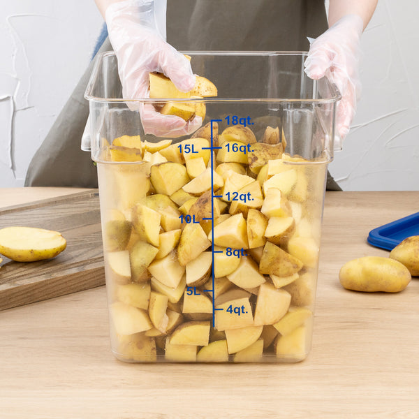 18 QT CLEAR PLASTIC FOOD STORAGE CONTAINER - WITH BLUE VOLUME MARKERS