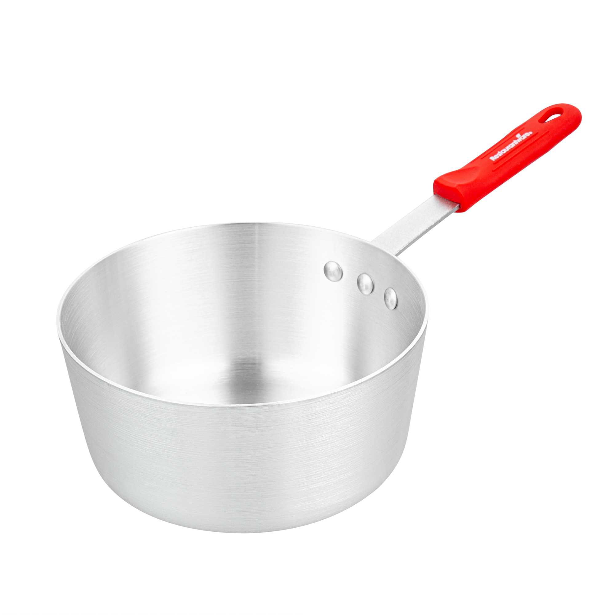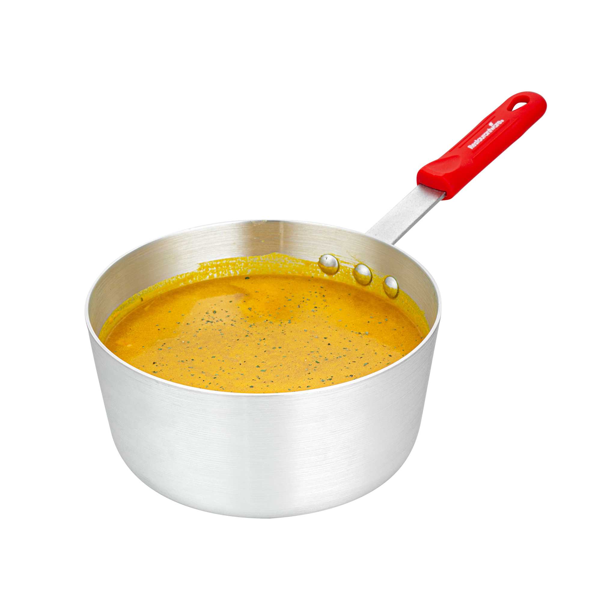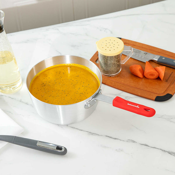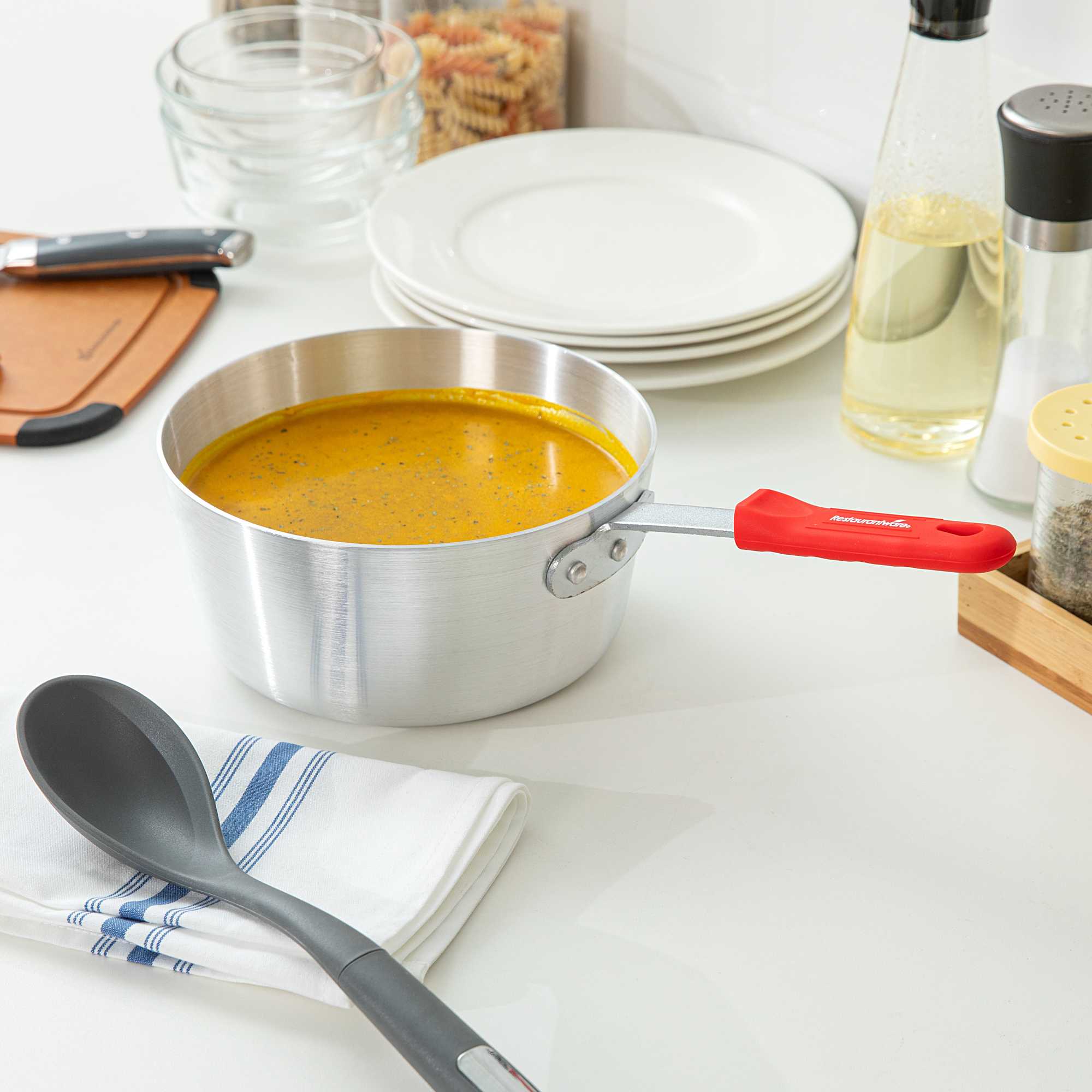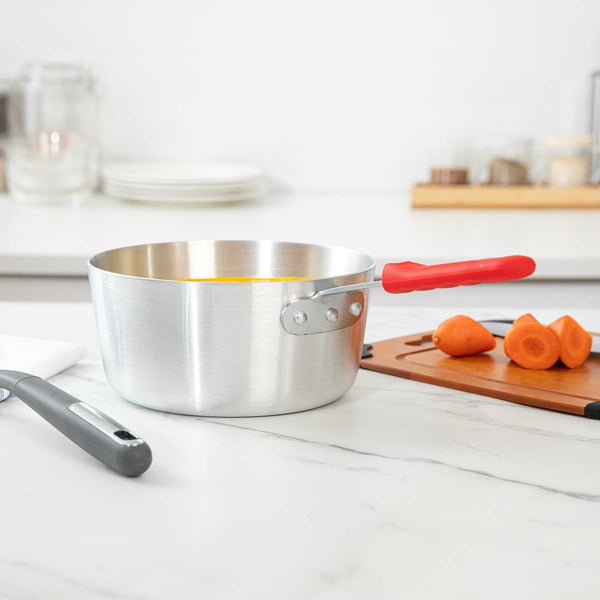 2.75 QT TAPERED ALUMINUM SAUCE PAN - WITH RED SILICONE HANDLE SLEEVE