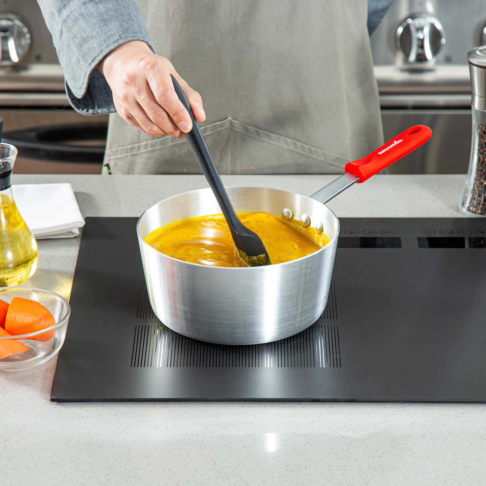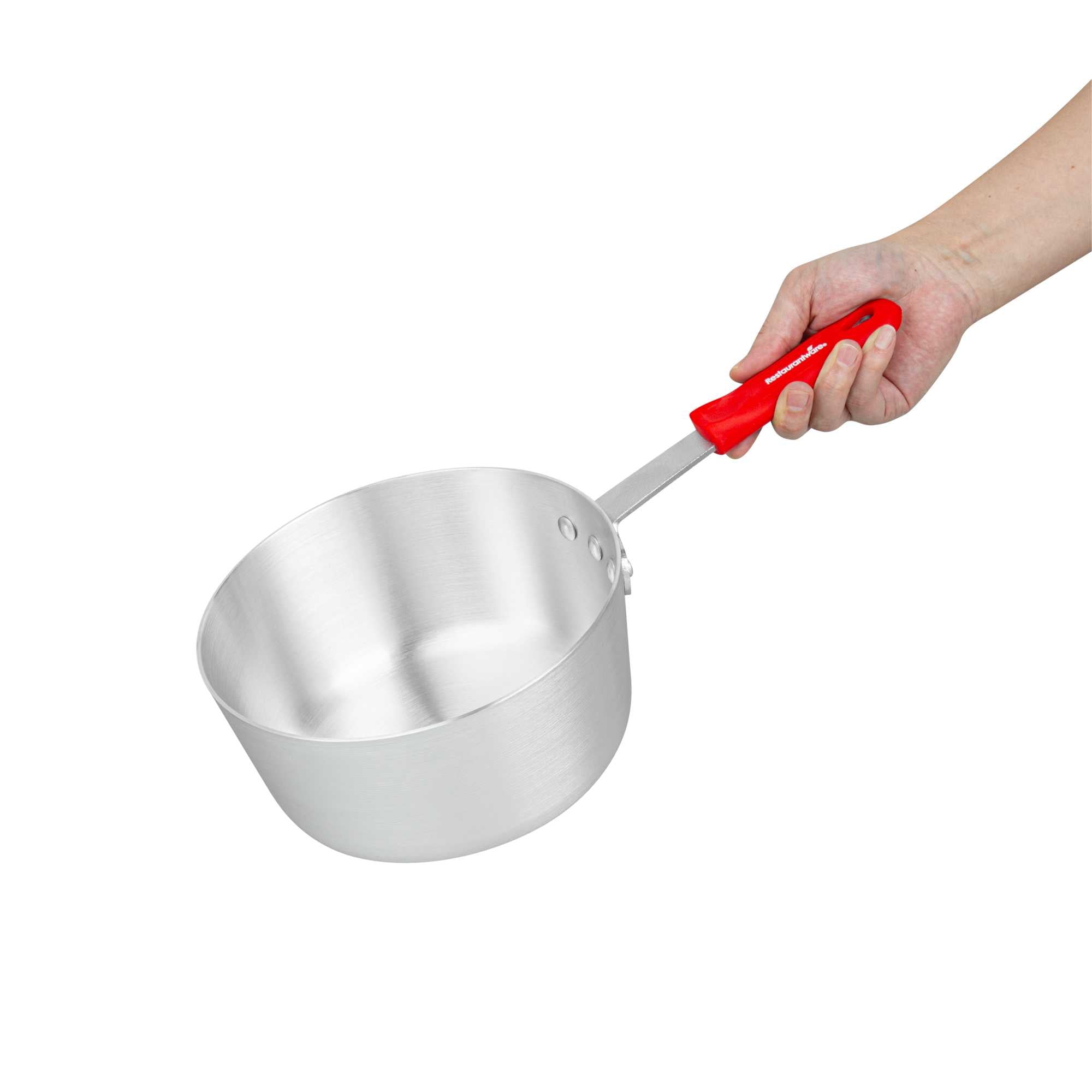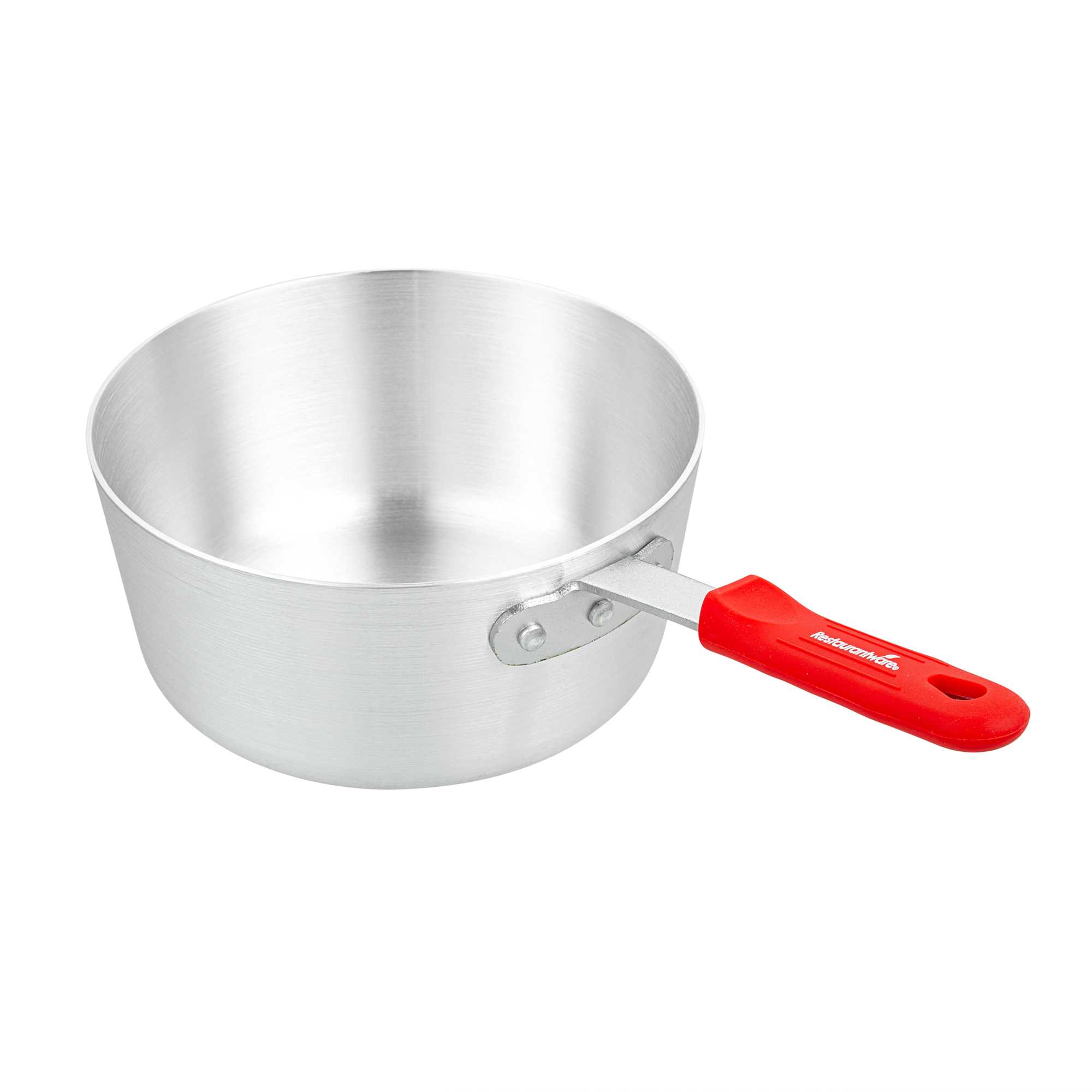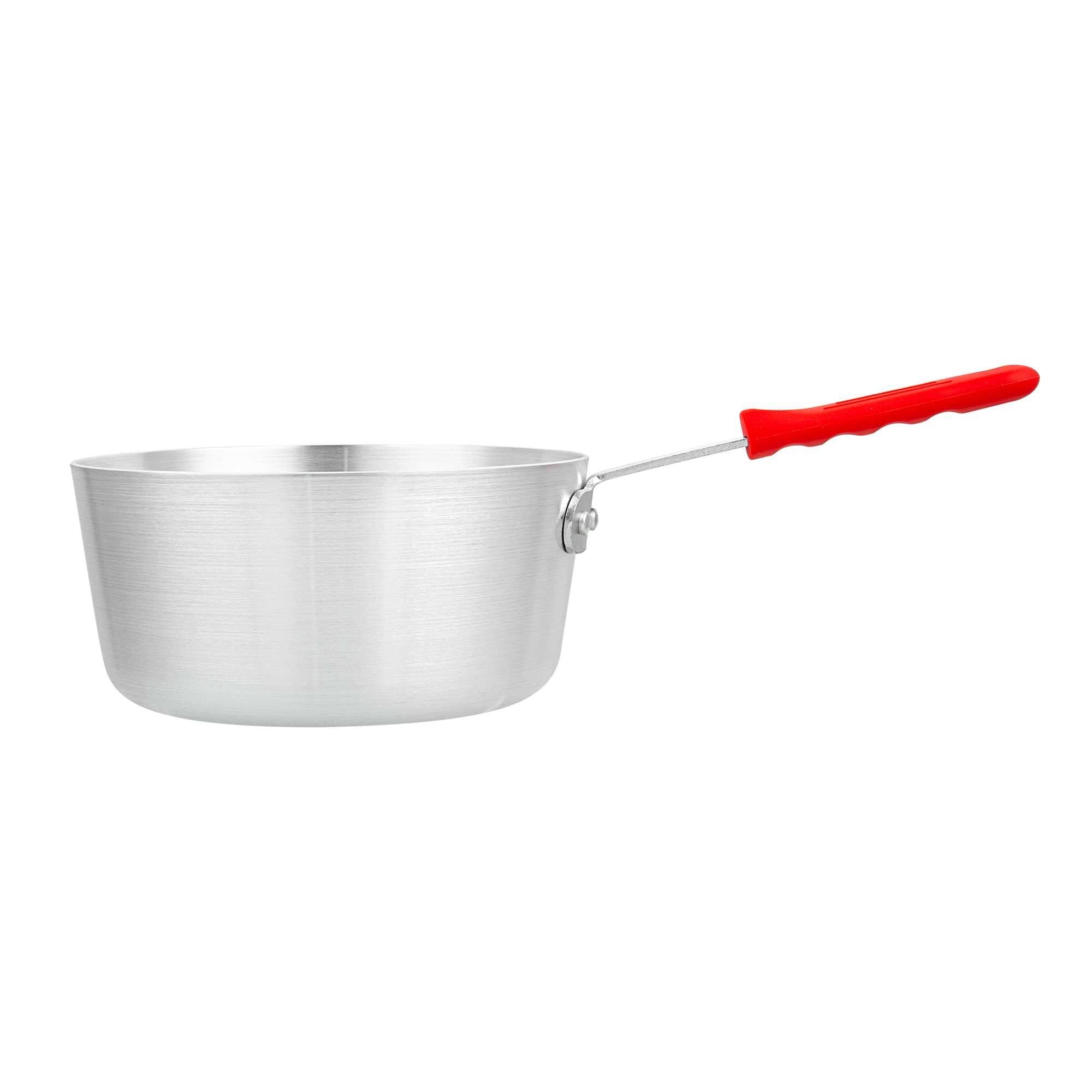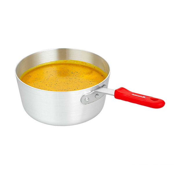2.75 QT TAPERED ALUMINUM SAUCE PAN - WITH RED SILICONE HANDLE SLEEVE