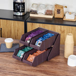 2 BROWN 2-TIER STANDS AND 4 CONDIMENT BINS AND 4 CONNECTOR CLIPS