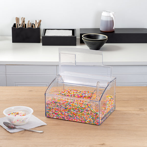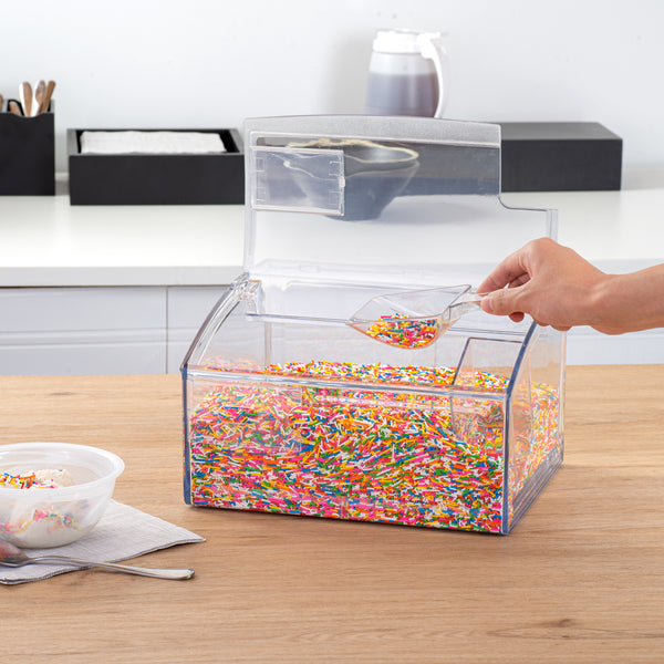 2 GAL CLEAR PLASTIC TOPPING BIN - 30 CUP, WITH SCOOP