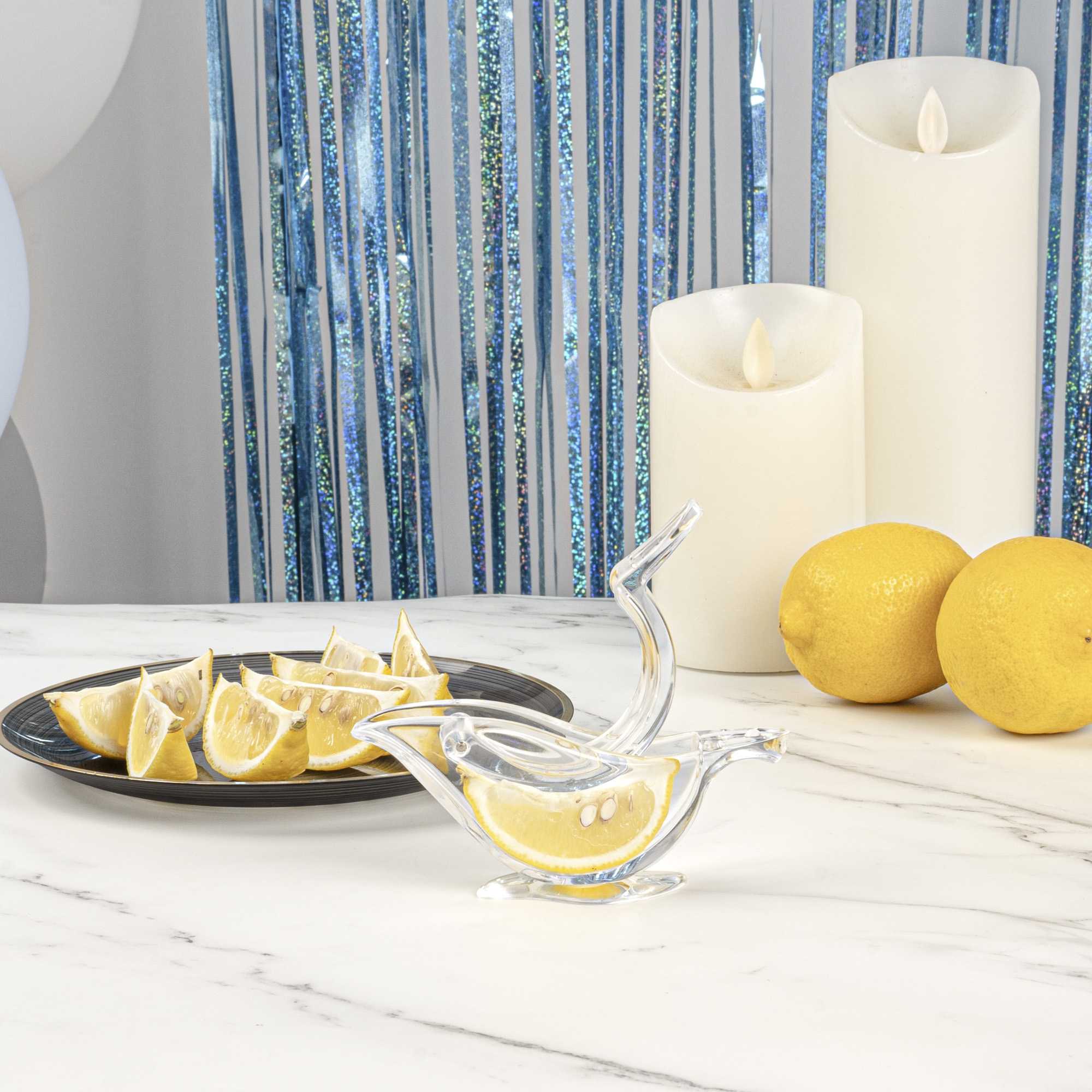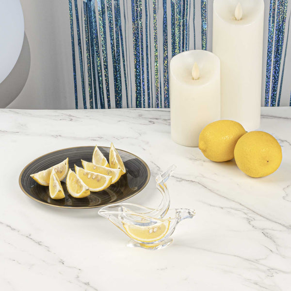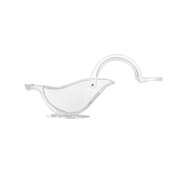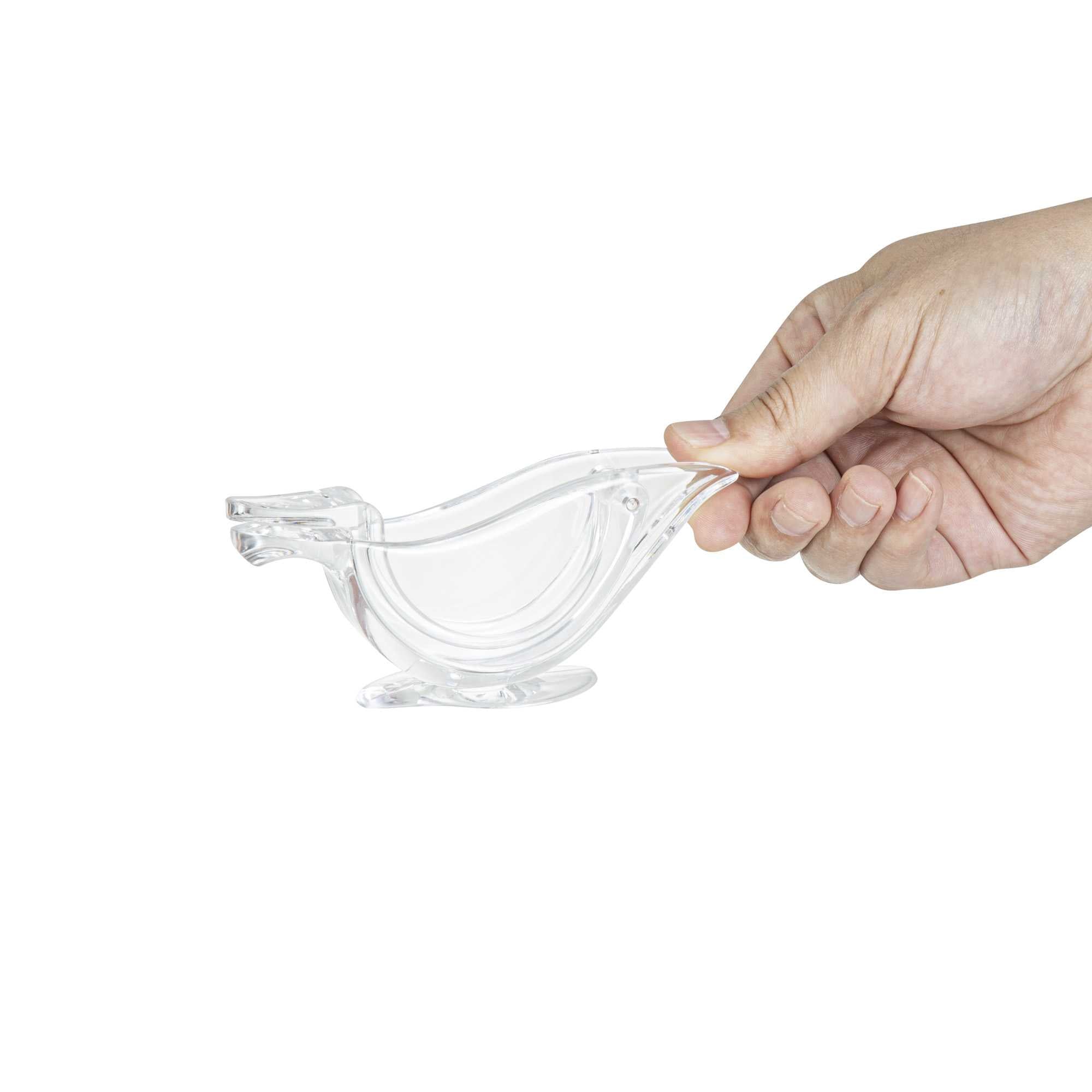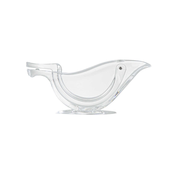 Efficiently flavor your dishes with freshly squeezed lemon juice with our Met Lux 2-ounce Clear Plastic Press Art Lemon and Lime Squeezer. This lemon wedge squeezer, with a sturdy construction, helps efficiently squeeze citrus. With a convenient handheld lever, this lemon squeezer requires only a simple press to extract juice. An elegant way to drizzle citrus, this free-standing lime squeezer allows you to freshly squeeze lemon wedges on demand. With a sturdy plastic construction, this lemon squeezer is built to withstand frequent use in busy commercial kitchens. For optimal stability, this lime squeezer features a wide base that prevents tipping. To comfortably squeeze, this handheld lemon juicer has an ergonomic handle that reduces strain. To capture every drop of juice, this citrus reamer has a 2 ounce capacity and measures 4.75 inches in length by 1.5 inches in width by 2 inches tall, fitting within cramped counter space. Sold in a 1 count box.