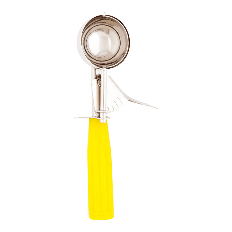2 OZ STAINLESS STEEL #20 PORTION SCOOP - WITH YELLOW HANDLE