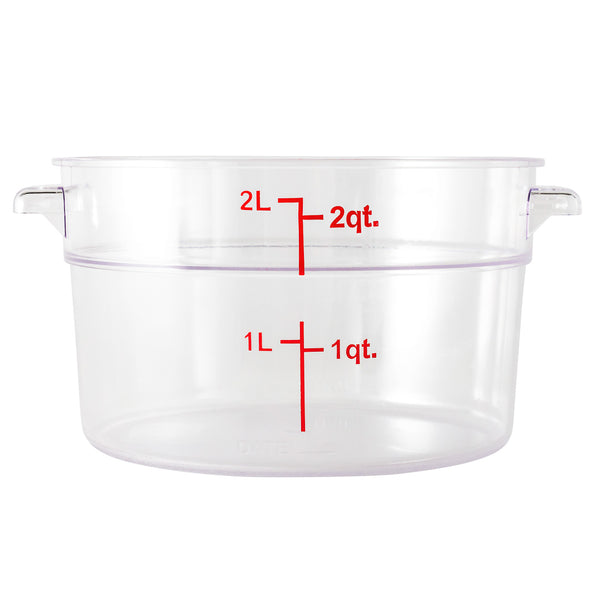 2 QT CLEAR PLASTIC FOOD STORAGE CONTAINER - WITH RED VOLUME MARKERS