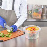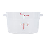 Elevate your food storage solution with our Met Lux 2-quart Round Translucent Plastic Food Storage Container. For accurate portion control, this translucent food container showcases red volume markers that ensure consistency during food preparation. Expertly crafted from durable PP plastic, this food storage container is designed to withstand temperatures ranging from -40 to 160 degrees Fahrenheit, making it perfect for both refrigeration and reheating. Easy to handle, this round plastic food container is equipped with a stable handle, allowing for smooth transportation in a busy kitchen. Pair this round plastic container with a compatible lid (SKU: RWT1572C-1) to create a secure, airtight seal that maintains food freshness. With a generous 2-quart capacity, this storage container can effortlessly hold your culinary creation while measuring 7.25 inches in diameter and 4.25 inches in height. Sold in a 1 count box. Storage container is available and sold separately.