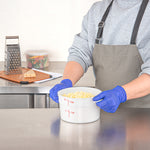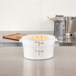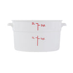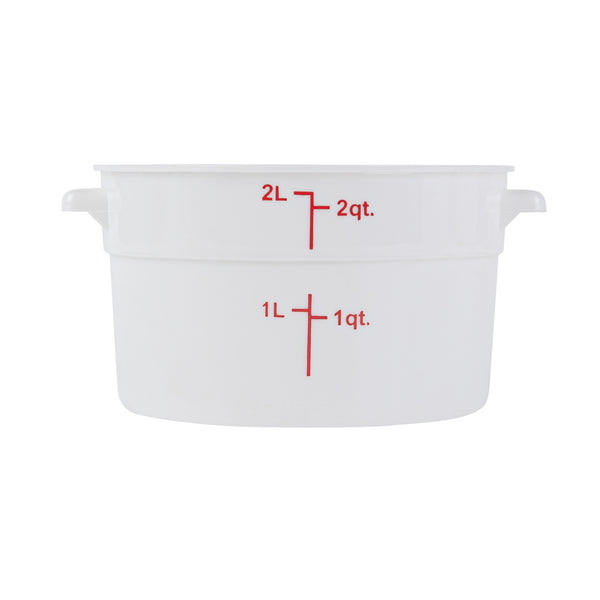 Ensure optimal food preservation with our Met Lux 2-quart Round White Plastic Food Storage Containers. These food storage containers are crafted from durable pp plastic, designed to withstand the rigors of daily use in busy kitchens. Equip your culinary space with these plastic food storage containers, featuring red volume markers for easy measuring and control of your ingredients. Take advantage of the stable handles on these round plastic food containers, ensuring secure and comfortable transportation from the pantry to the countertop. With the ability to endure temperatures ranging from -40 to 160 degrees Fahrenheit, these food containers are both freezable and dishwashable for maximum convenience. Pair these round plastic containers with our available lids (SKU: RWT1572C), creating a tight seal to maintain freshness and prevent spills. Boasting a 2-quart capacity, these white food containers are ideal for storing large batches of food, while their dimensions of 7.25 inches in diameter by 4.25 inches in height allow for efficient space utilization in your storage areas. Sold in a 10 count box. Lids are available and sold separately.