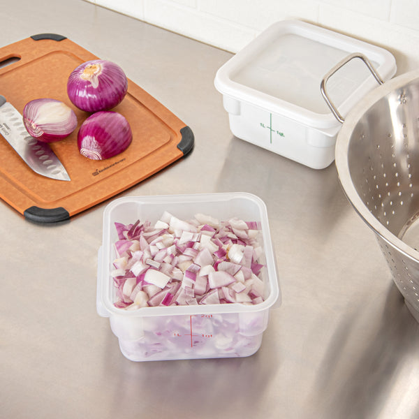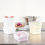Optimize your kitchen's efficiency with reliable storage solutions. The Met Lux Graduated Food Storage Container offers a robust design with ergonomic handles, making it an indispensable food storage container for busy commercial kitchens. Its red graduations ensure precise portion control, significantly reducing food waste and maximizing ingredient utilization. With its stackable design, this food container optimizes valuable kitchen space. Crafted from durable polypropylene, this storage container withstands the rigors of daily use, while its translucent finish provides easy visibility of contents. The dishwasher-safe construction supports efficient kitchen operations by simplifying cleanup. Ideal for both hot and cold foods, this versatile container measures 7 inches in length, 7 inches in width, and 3.88 inches in height, perfectly accommodating varied storage needs. Each order includes 10 Met Lux Graduated Food Storage Containers.