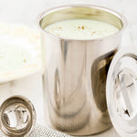 Keep a variety of toppings at their perfect temperatures with our Met Lux Bain Marie 2 Quarts. Constructed from premium stainless steel, this durable bain marie pot is built to sustain the desired temperature of delicious foods served at your restaurant, buffet, catering event, and more. Containing up to 2 quarts, this metal food storage container is ideal for serving tasty cheese sauces at your Taqueria or for serving salad dressings at your restaurant's salad bar. This stainless steel cookware keeps your food fresh and organized for guests to enjoy. To easily store your scrumptious toppings use our coordinating lid (SKU: RWT0180). Lid sold separately. This bain marie insert measure 5 inches long by 5 inches wide and 6.5 inches tall, and holds 2 quarts. Available in a 1 count box.