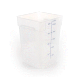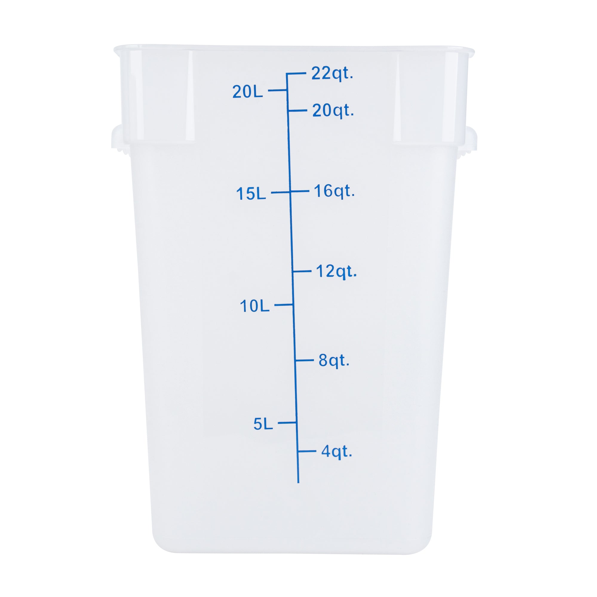 Optimize your kitchen efficiency with precise portion control. The Met Lux Graduated Plastic Food Container offers blue graduations for exact measurements, reducing waste and maximizing storage space for your needs. Designed with stable ergonomic handles, this container ensures effortless transport and minimizes spillage, making it an ideal freezer safe container for busy kitchens. Constructed from durable PP plastic, it withstands rigorous use, ensuring longevity even in high-demand settings, and is both hot and cold food friendly. Translucent in color, it allows for easy identification of contents while being a reliable storage container option. With dimensions of 10.88 inches in length, 10.88 inches in width, and 15.5 inches in height, it accommodates up to 22 gallons of ingredients, ideal for any foodservice operation. Elevate your kitchen's organization and efficiency today with this dependable container. Each order includes 1 Met Lux Graduated Plastic Food Container.