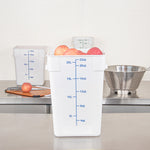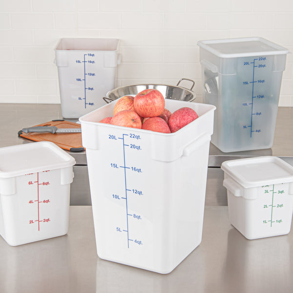 Optimize storage and reduce food waste in your kitchen. The Met Lux Portion-Control Food Storage Container features blue graduations for precise portion control, ensuring efficient use of ingredients and minimizing excess. Crafted from durable PP plastic, this plastic storage container withstands the demands of high-volume kitchens, maintaining its integrity under both hot and cold conditions. Its stable, ergonomic handles make transport effortless, reducing the risk of spills during busy service hours. With dimensions of 10.88 inches in length and width and 15.5 inches in height, this kitchen storage bin offers a generous 22-quart capacity, perfect for a variety of food items. Dishwasher safe and designed with practicality in mind, this container is an essential tool for maintaining an organized and efficient kitchen setting. Each order includes 1 Met Lux Portion-Control Food Storage Container.