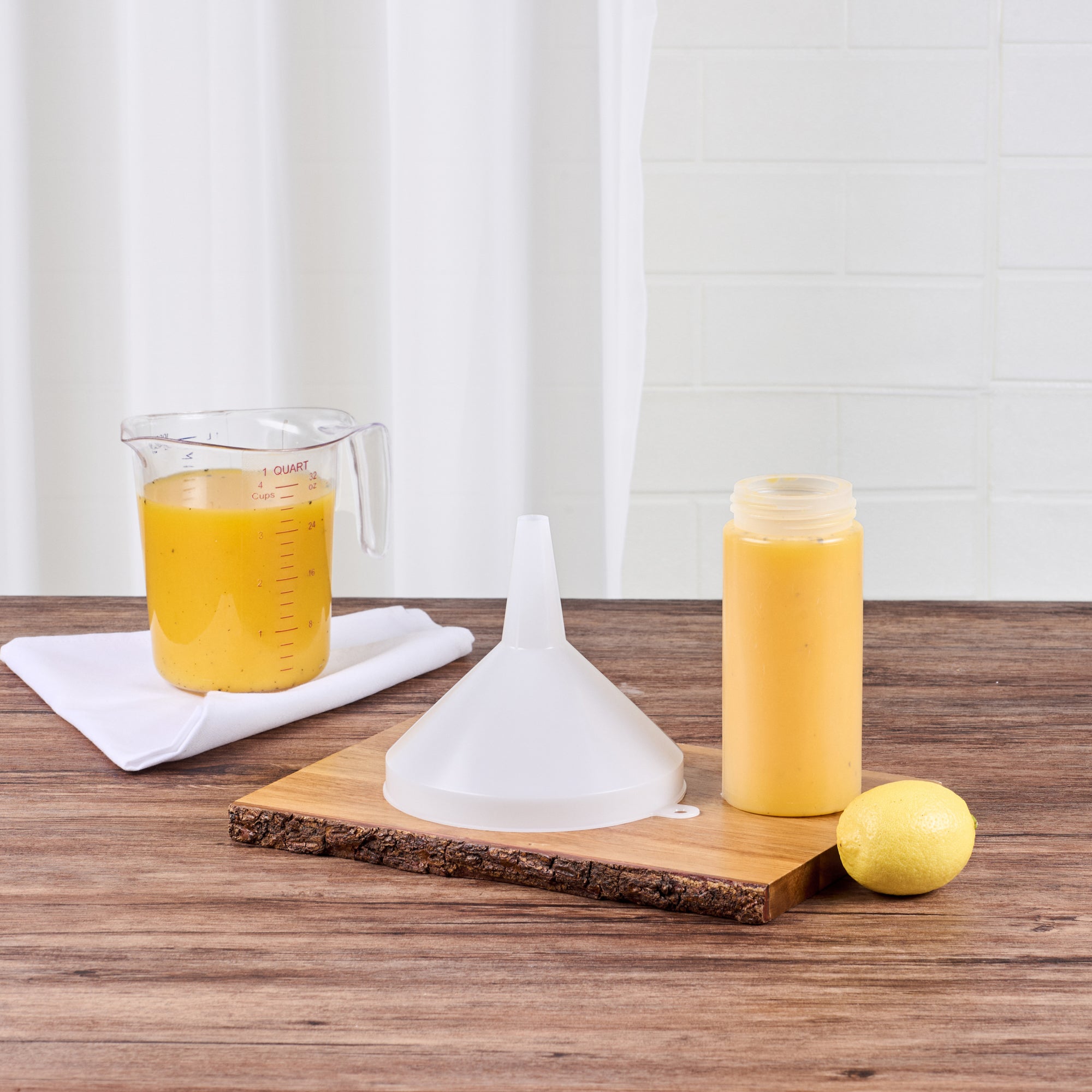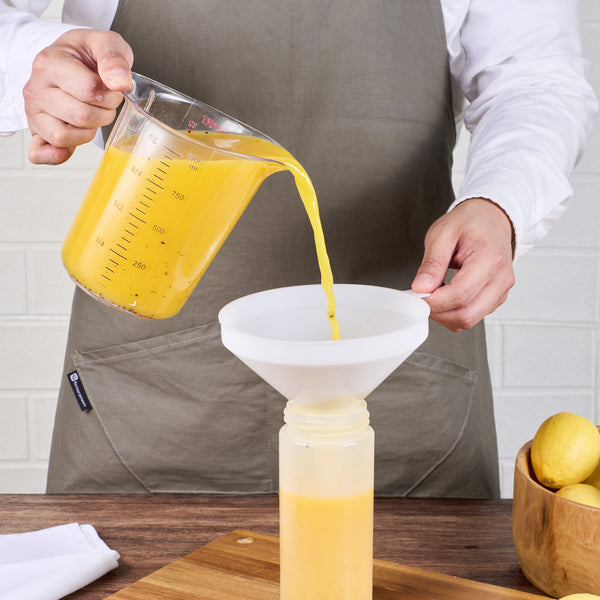 Product Description: Easily manage all your liquid transfer needs with our Met Lux 24-ounce White Plastic Funnel. Crafted from durable polyethylene plastic, this large kitchen funnel ensures long-lasting use and minimal wear. The spill-reducing design of these funnels ensures a mess-free pouring experience for all your liquid transfer tasks. Featuring a wide top diameter, this food-grade funnel allows for quick and efficient filling. Ideal for multi-purpose use, these white plastic funnels are perfect for both foodservice applications and home use. With an optimal capacity of 24 ounces, this liquid transfer funnel is designed to handle substantial volumes. Measuring 0.63 inches in length by 0.63 inches in width by 5.6 inches in height, this 24-ounce funnel fits comfortably in your hand for easy maneuverability. Sold in a 1 count box.