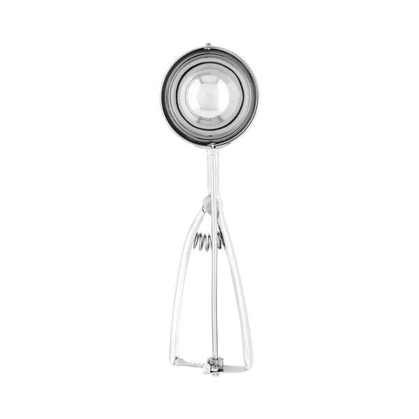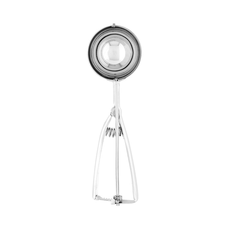Serve perfectly round scoops of ice cream with our Met Lux 3.2-ounce Silver Stainless Steel #8 Ice Cream Scoop. Crafted from high-quality stainless steel, this durable ice cream scoop with a trigger is built to scoop all types of desserts and withstand high-volume use in your commercial kitchen. This cookie dough scoop features a small blade inside the bowl that ensures excess ice cream is scraped away to reduce food waste at your ice cream parlor, bakery, cafe, or other foodservice establishments. Featuring a squeeze handle, this ambidextrous ice cream disher allows your left and right-handed employees to comfortably scoop and activate the blade to consistently serve uniform portions. This cookie scoop is conveniently dishwasher-safe to minimize your cleanup time after service hours. Containing up to 3.2 ounces, this stainless steel scoop measures 7.75 inches in length by 2.5 inches in width. Shipped in a 1 count box.