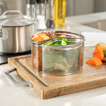 Maximize kitchen efficiency with our Met Lux 3-Piece 18 cm Stainless Steel Saucepan Divider. This innovative steamer basket, crafted from durable stainless steel, features a punching hole design that efficiently drains liquids, expediting your meal prep process. With its dishwasher-safe feature, this perforated basket for steaming simplifies post-service cleanup, allowing chefs to focus on creating culinary masterpieces. The unique dividers enable you to cook three separate ingredients in a single pot, saving precious hob space and streamlining your cooking operations. Its compact 7.24 inches in length by 7.24 inches in width by 3.94 inches in height seamlessly fits into steaming pots, making it an ideal saucepan divider basket for simultaneously cooking multiple ingredients. Sold in a 1 count box.