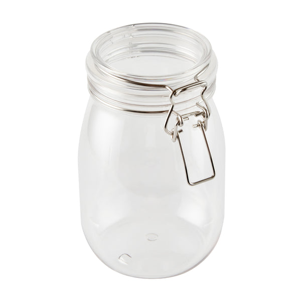 39 OZ ROUND CLEAR PLASTIC STORAGE JAR - WITH HINGED LID