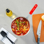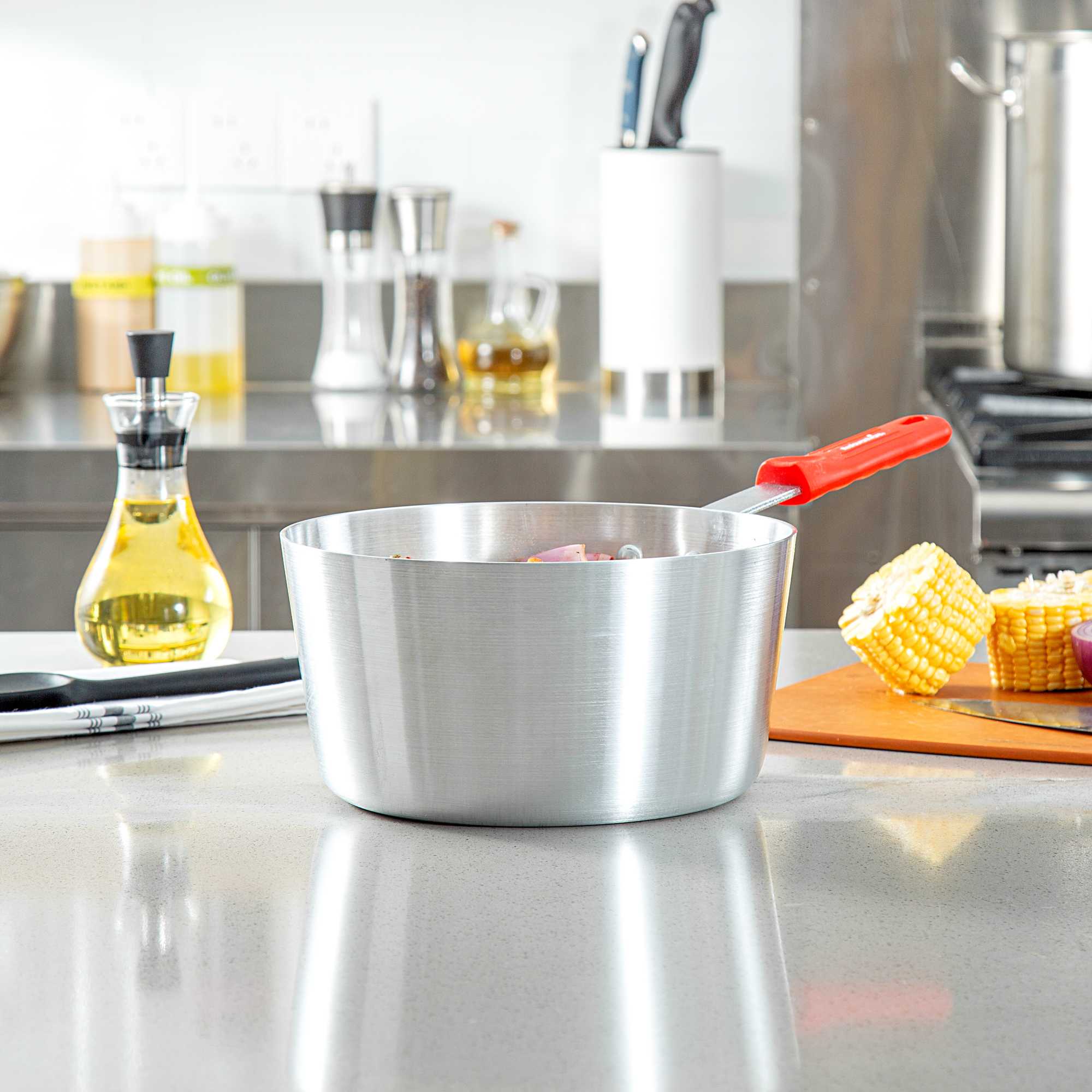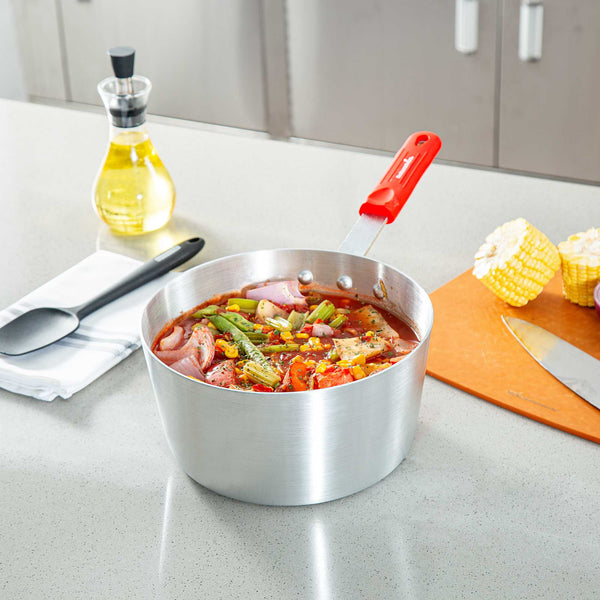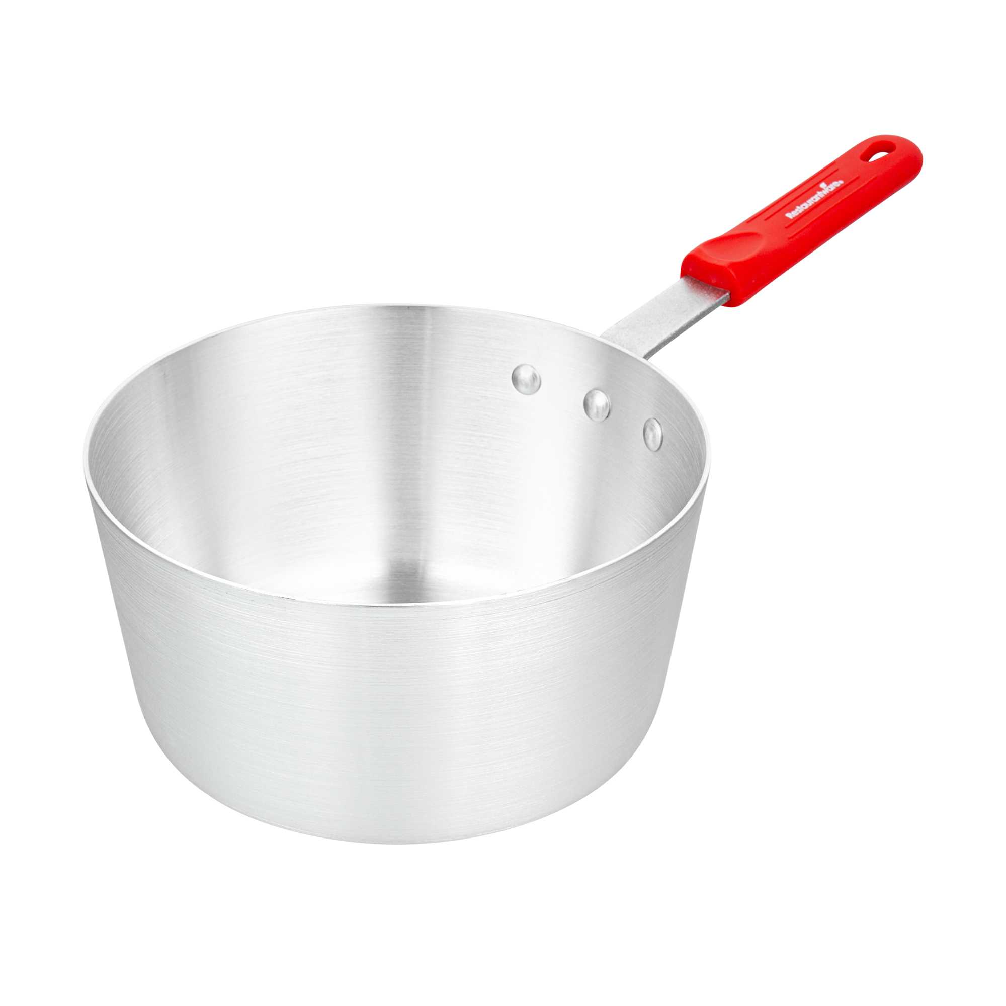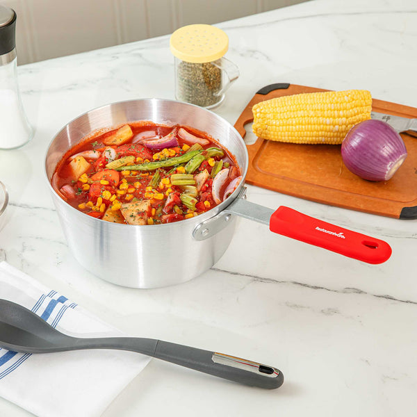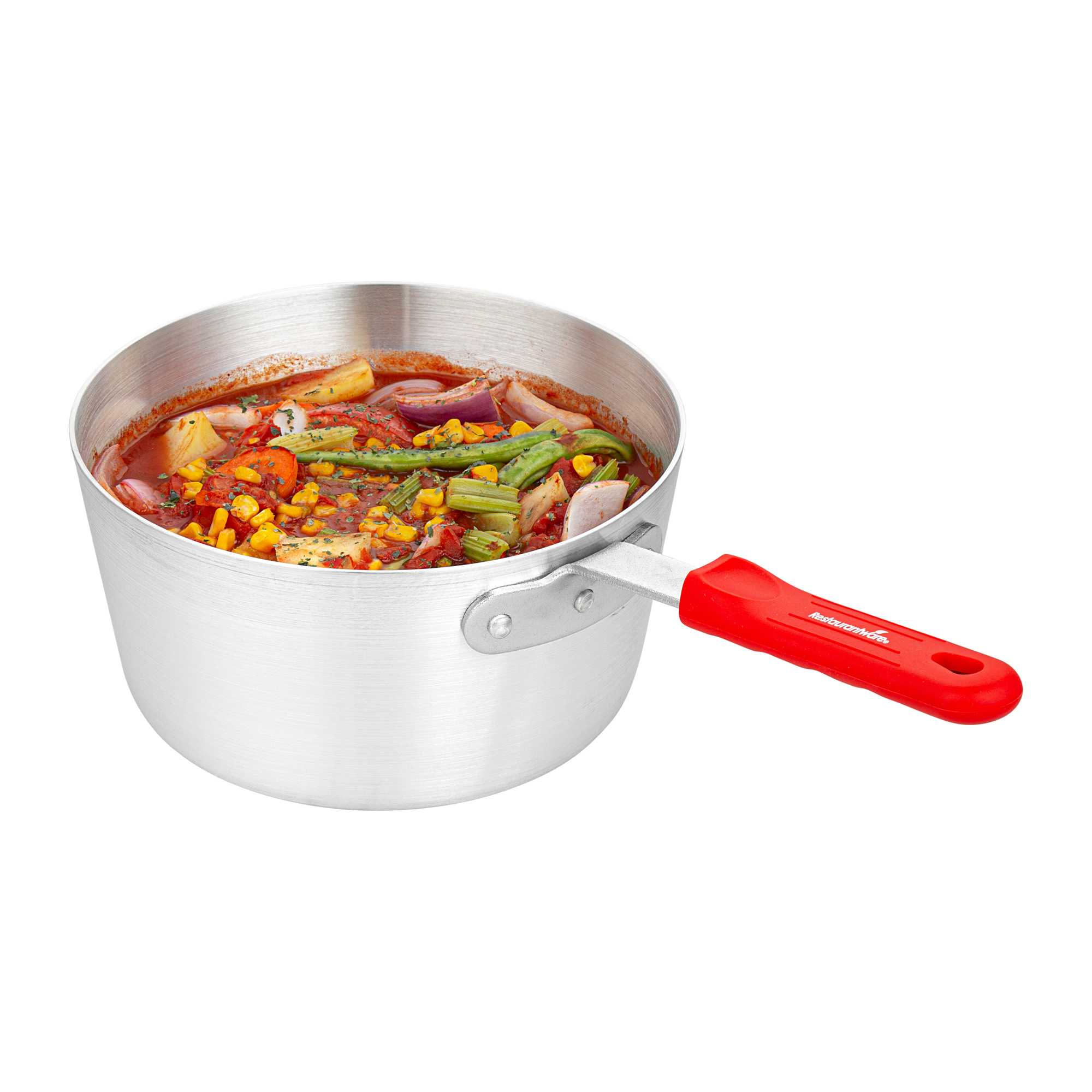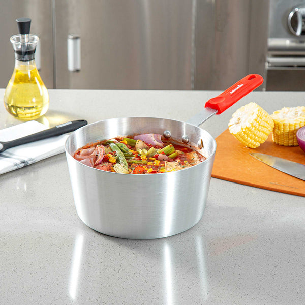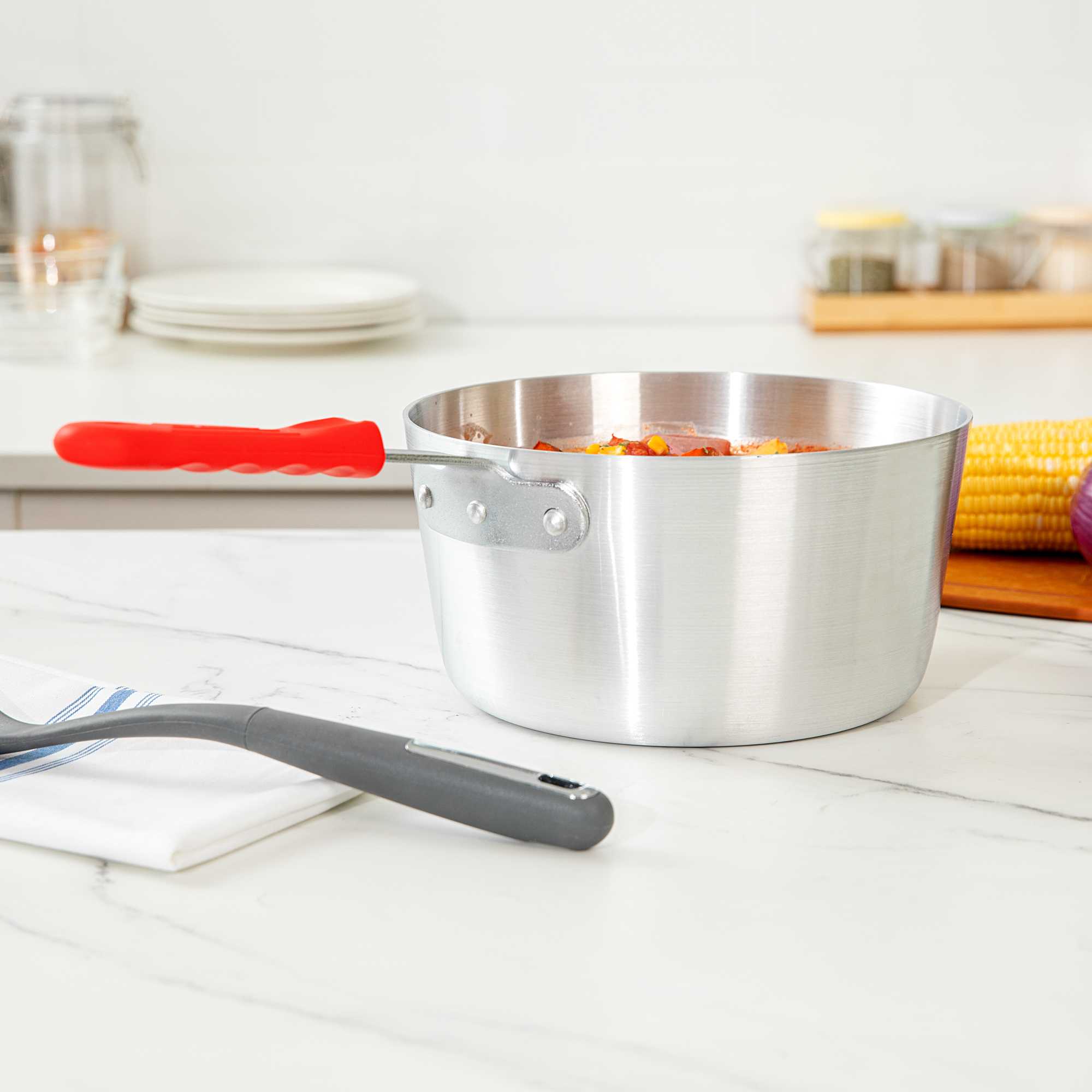4.5 QT TAPERED ALUMINUM SAUCE PAN - WITH RED SILICONE HANDLE SLEEVE