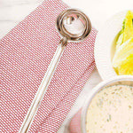 Serve consistent portions of food with our Met Lux 4-Ounce Stainless Steel Serving Ladle. Manufactured from high-quality stainless steel, this soup spoon is durable and won't rust or corrode easily, ideal for long-lasting use. This stainless steel spoon has a long handle engraved with a capacity marker indicating it contains 4 ounces, facilitating your serving process. The ergonomic handle of this sauce spoon has a curved end for a comfortable hold to streamline your foodservice. This serving spoon is dishwasher-safe for a simple cleaning experience. Measuring 13.75 inches long by 3.25 inches wide by 1.5 inches tall, this serving ladle holds up to 4 ounces. Sold in a 1 count box.