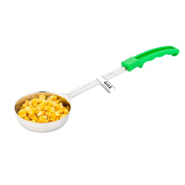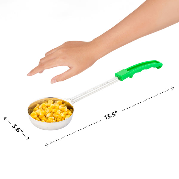 4 OZ STAINLESS STEEL SPOODLE - PERFORATED, WITH GREEN HANDLE