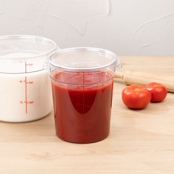 4 QT CLEAR PLASTIC FOOD STORAGE CONTAINER - WITH RED VOLUME MARKERS