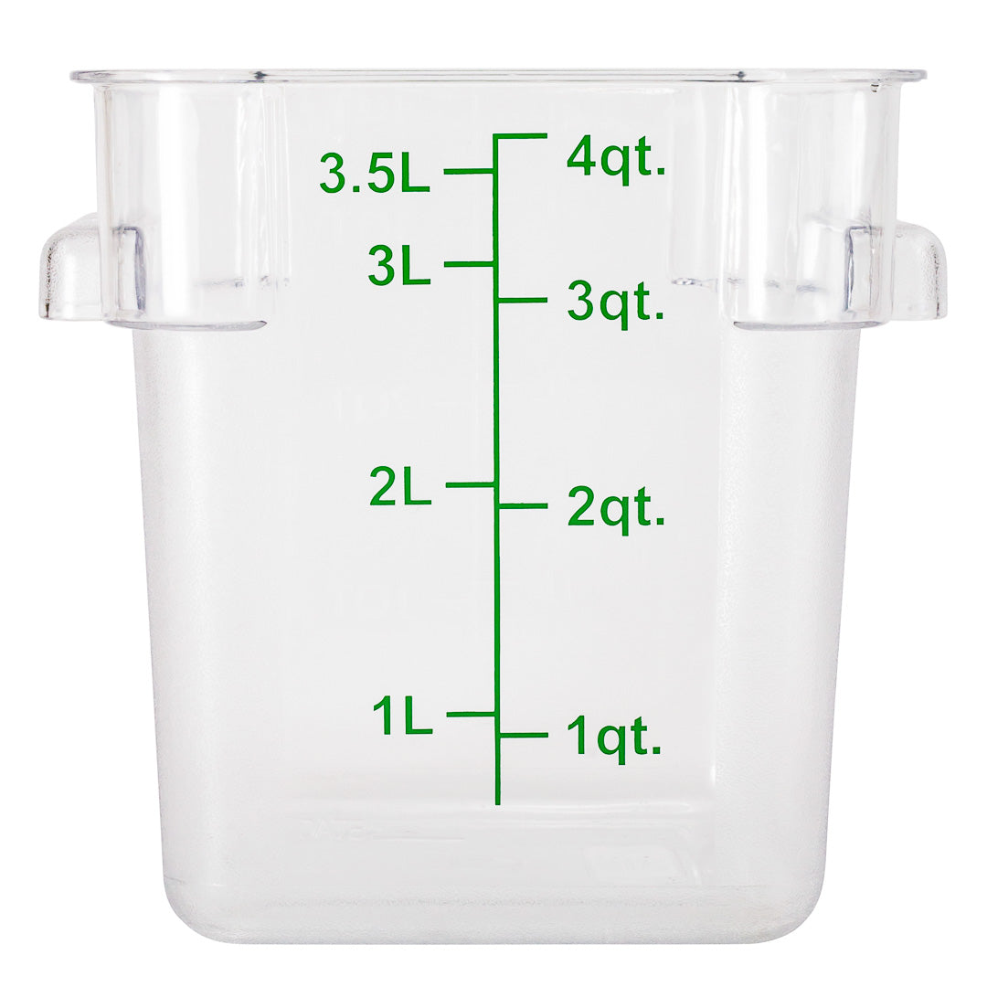 4 QT CLEAR PLASTIC FOOD STORAGE CONTAINER - WITH GREEN VOLUME MARKERS