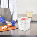 Enhance kitchen efficiency with versatile storage solutions. Met Lux Precise Graduations Plastic Storage Containers feature green graduations that enable precise portion control and reduce waste, making them indispensable for any foodservice operation. Designed with sturdy, ergonomic handles, these square food containers ensure effortless transport and minimize spillage, even in the most bustling kitchens. Crafted from durable polypropylene, each container stands up to the demands of high-volume usage, offering long-lasting reliability. With a dishwasher-safe design, these polypropylene containers streamline cleaning processes, allowing staff to focus on other essential tasks. Measuring 7 inches in length, 7 inches in width, and 7.38 inches in height, these containers provide ample storage capacity while maximizing space efficiency. Choose these plastic storage containers for an organized kitchen. Each order includes 10 Met Lux Precise Graduations Plastic Storage Containers.