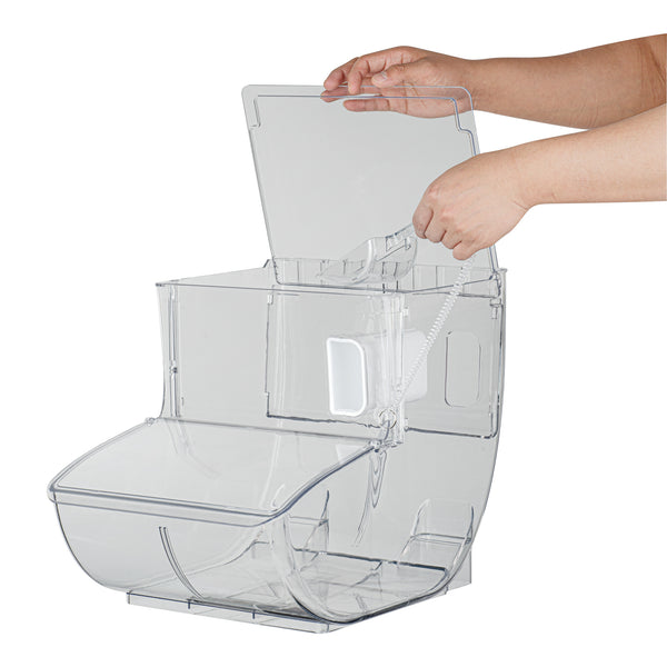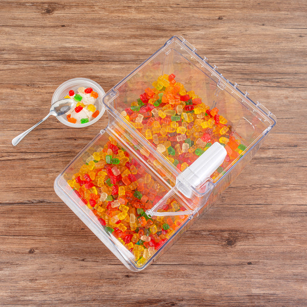 5.25 GAL CLEAR PLASTIC TOPPING BIN - 80 CUP, WITH SCOOP