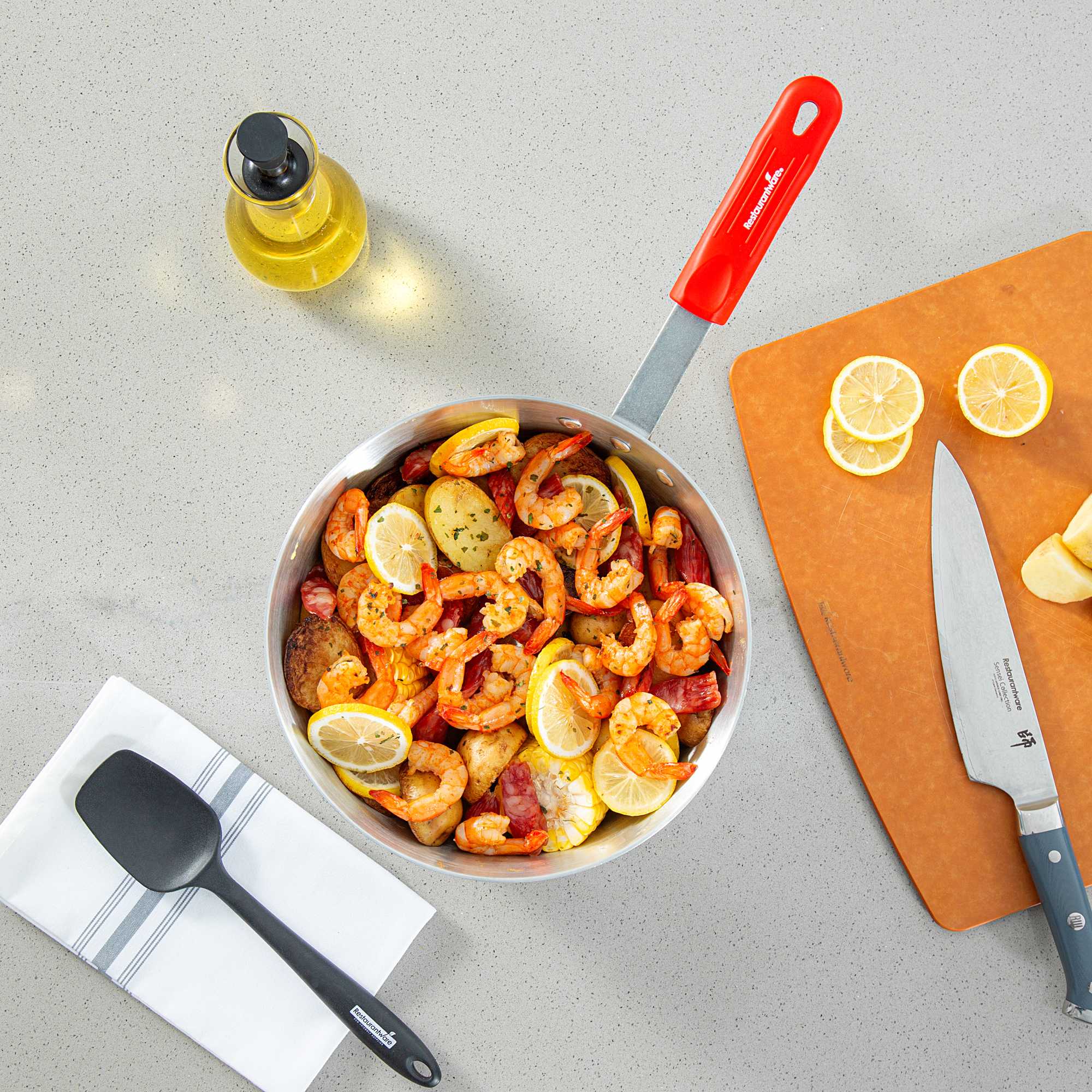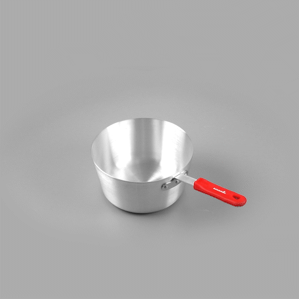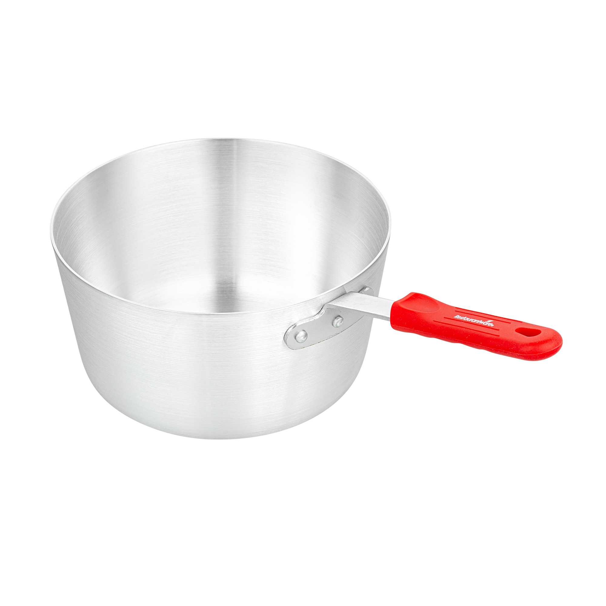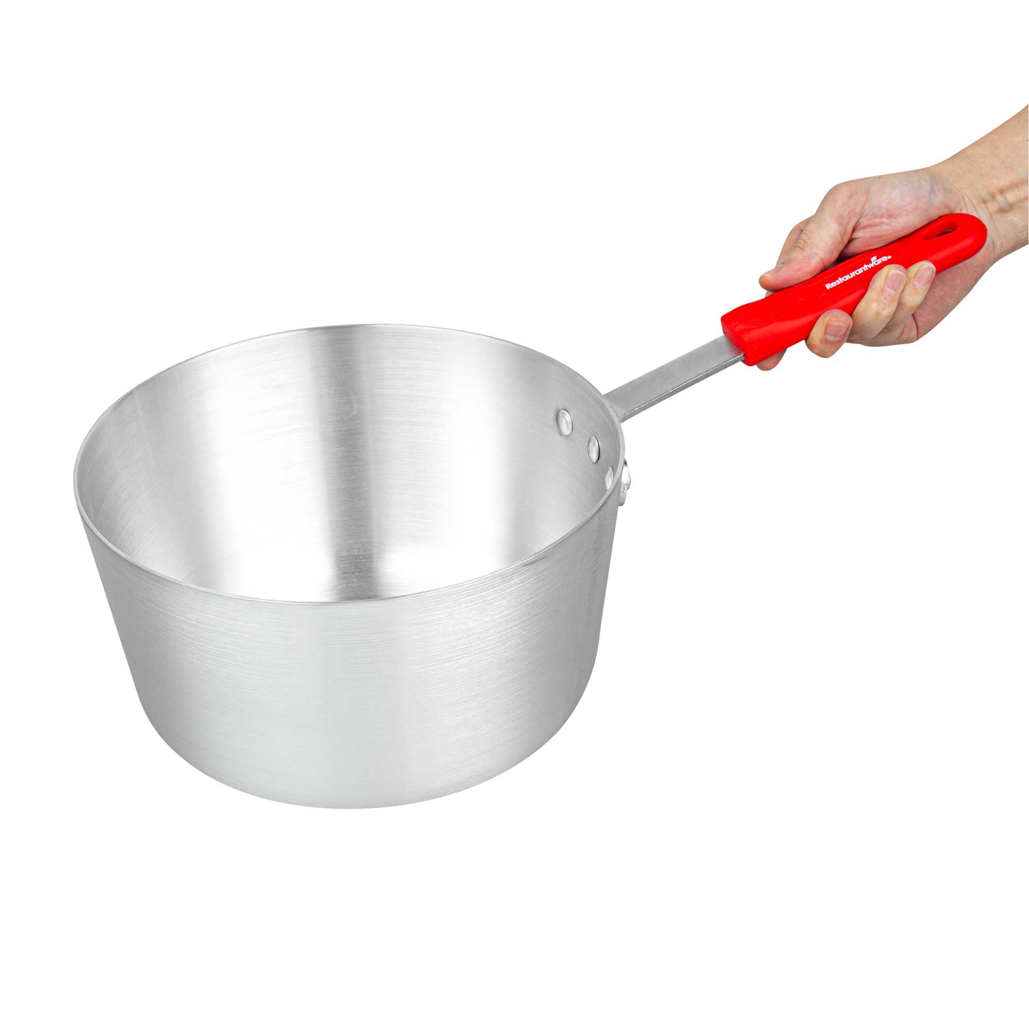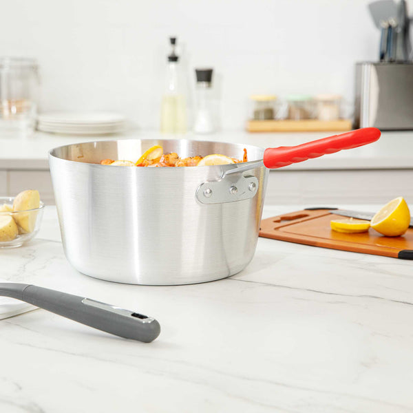 5.5 QT TAPERED ALUMINUM SAUCE PAN - WITH RED SILICONE HANDLE SLEEVE