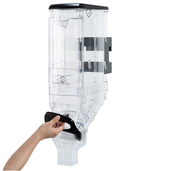 5 GAL BLACK PLASTIC WALL MOUNT CEREAL DISPENSER