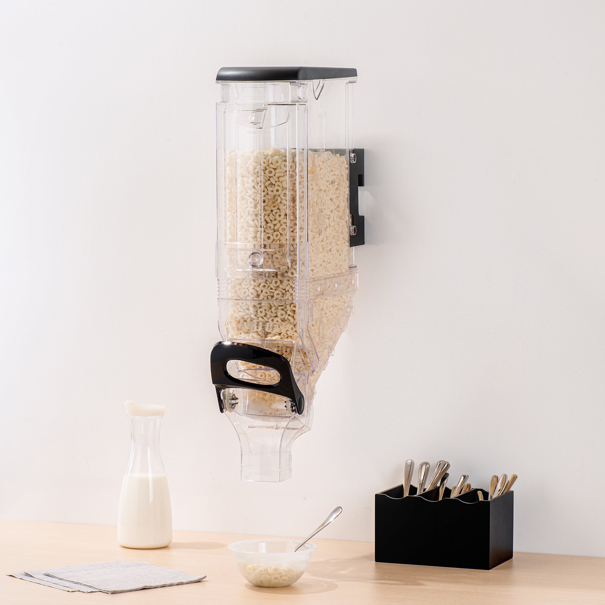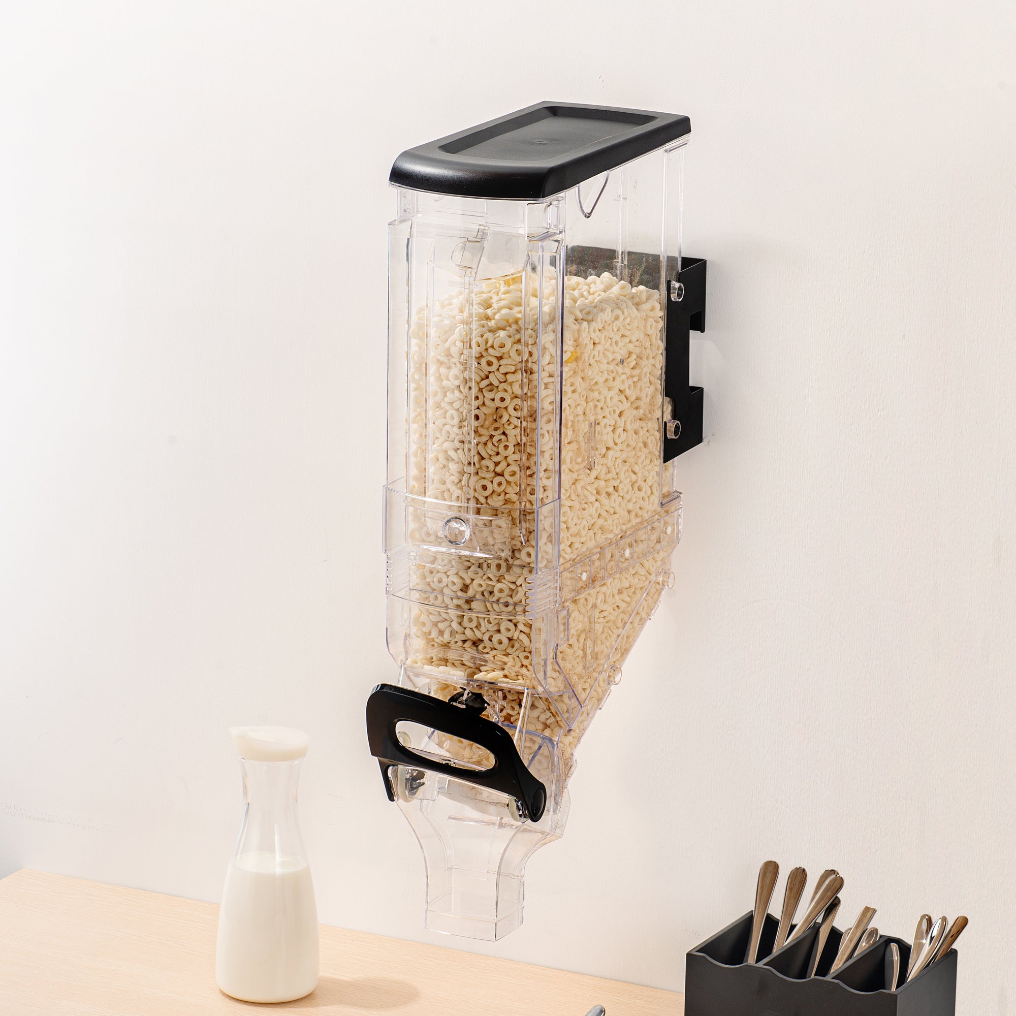 This innovative cereal dispenser can be wall-mounted, saving valuable counter space and providing easy access to your favorite breakfast cereals. Keep it clean, keep it tidy!
