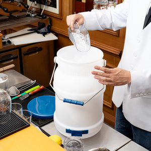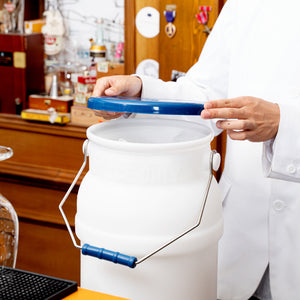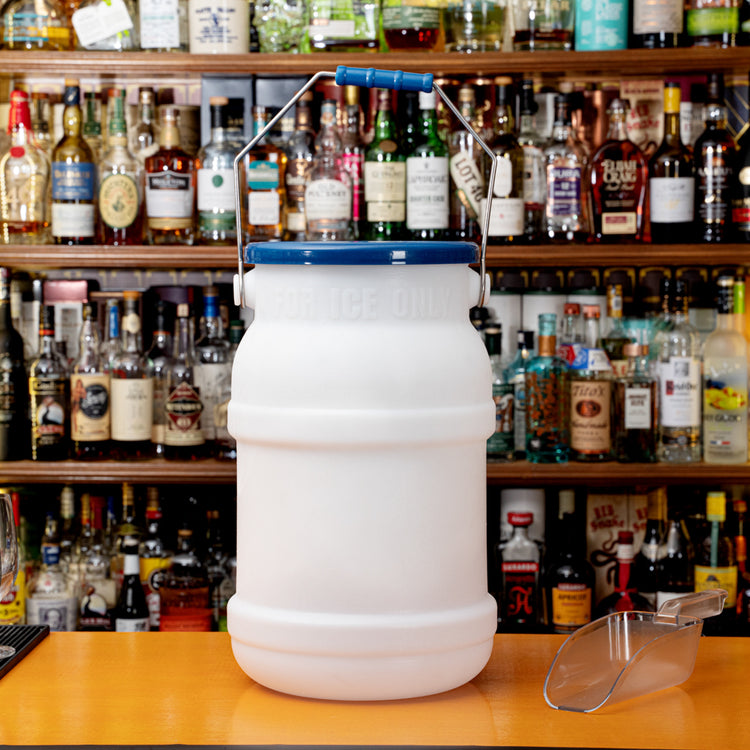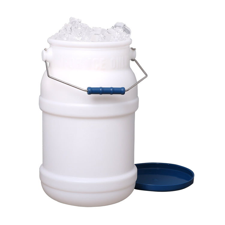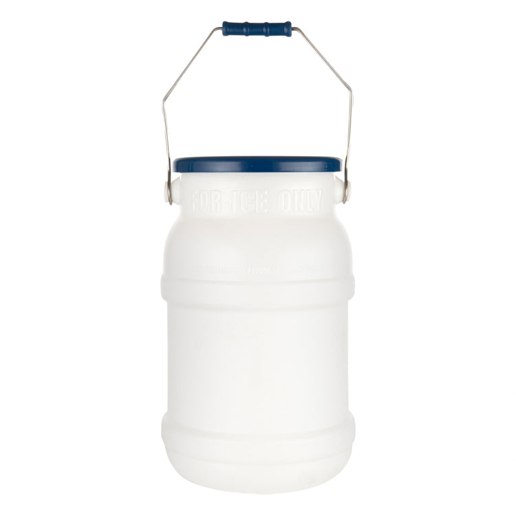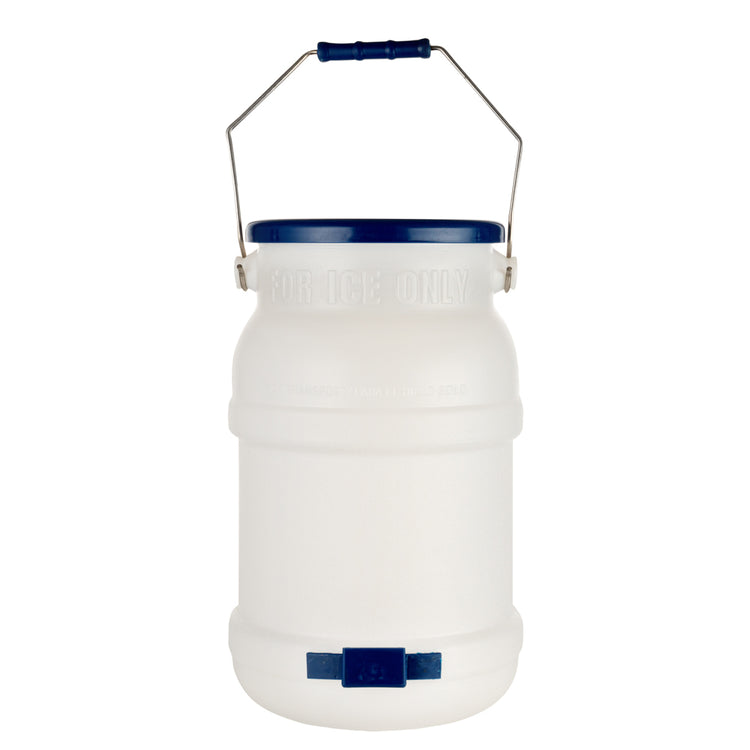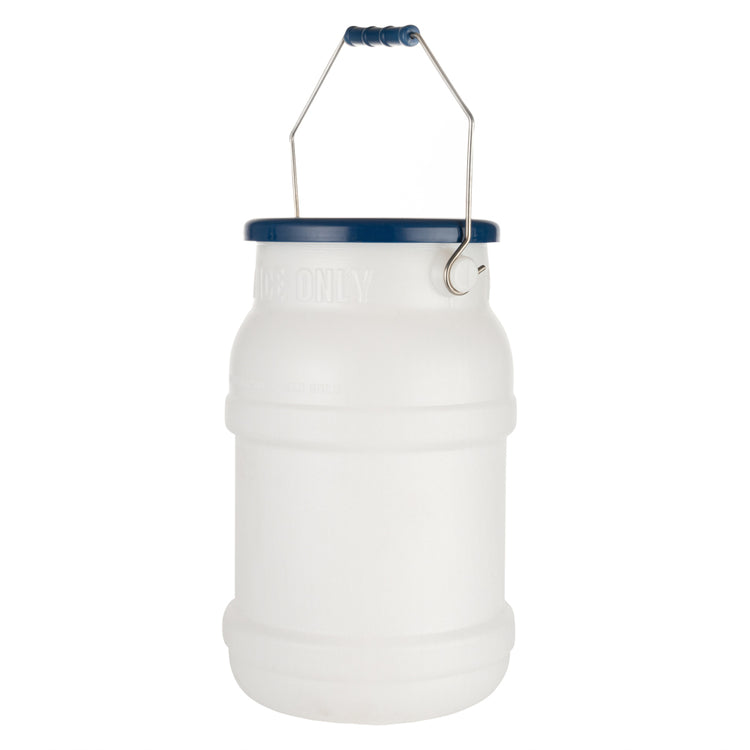 Safely carry ice from the kitchen to your bar with our Met Lux 5-gallon Round White Plastic Ice Tote. Constructed from premium plastic, this heavy-duty ice transport bucket can hold the weight of up to 5 gallons of ice. Equipped with a molded handle, this ice tote provides employees a comfortable hold while moving a large amount of ice. This restaurant ice bucket includes a tight-fitting lid that expertly seals in ice and prevents spills. Featuring a mounting bracket, this commercial ice bucket can be hung upside down for drying and saving space in your kitchen. This plastic ice transport container reads "FOR ICE ONLY" to inform employees that this bucket can only be used for storing and transporting ice. With a white finish, this ice bucket easily matches your existing kitchen equipment. This plastic ice tote has a top diameter of 9 inches, a bottom diameter of 10 inches, a maximum diameter of 10.5 inches, and is 17 inches tall. Sold in a 1 count box.